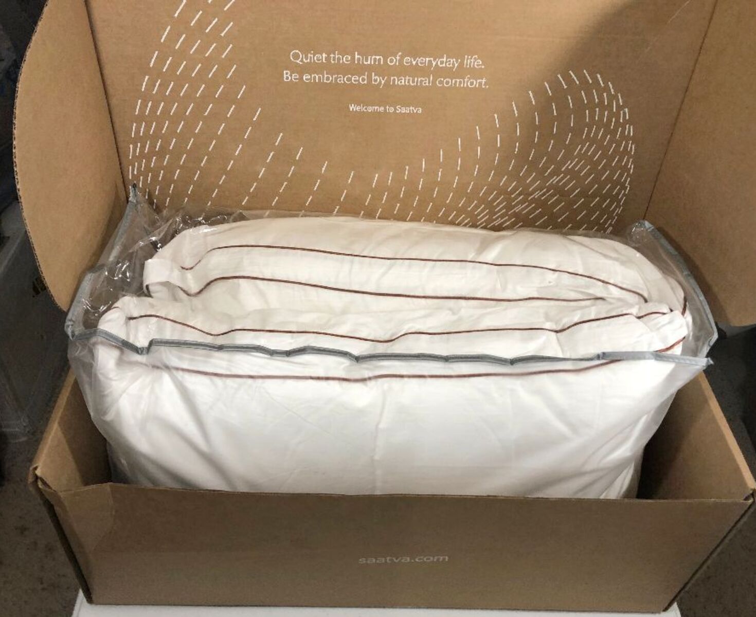 This is a set of two luxury QUEEN size bed pillows by SAATVA. They measure 18 x 28 inches with a standard loft, filled with latex and encased in an organic cover. The pillows are designed for the bedroom, featuring a white color and a theme of luxury. Mindfully Made, Luxurious Comfort. Hotel-quality comfort with responsive & ultra-breathable support.