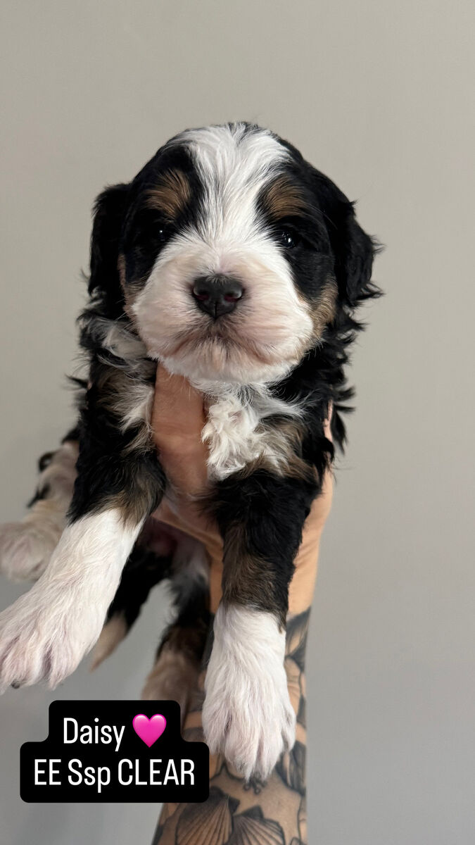 All pups are FF and straight coat. Mom is 17 lbs and dad is 21 lbs. Each pup has its own genetic testing.