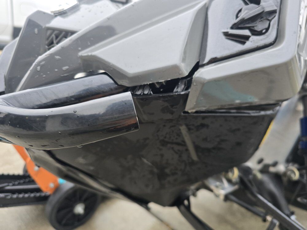 I bumped into a stump at super low speed one day but it was just the perfect height to put a dent in the pipe. I used a stud puller and pulled it out but its still visible. When I bumped into the stump it made the nose peice deform a little, so I included a photo where the side panel doesnt meet the front perfectly. I am willing to negotiate something fair for these blemishes.