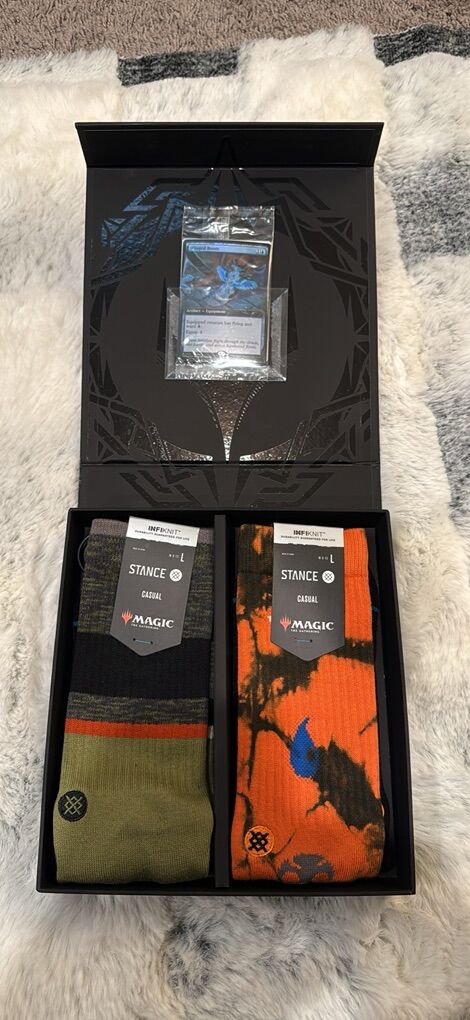ApplePayMagic The Gathering X Stance collab including two pairs of MTG stance Socks and one sealed Winged Boot promotional card,