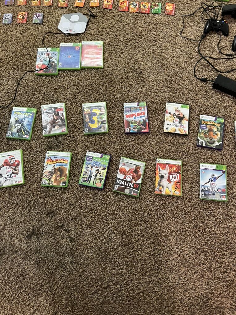 VenmoXbox 360 Console Bundle - HUGE Skylanders Collection! $350 OBO Complete Xbox 360 gaming setup with massive game collection! Perfect for families or collectors. INCLUDES: Console & Controllers: ∙ Xbox 360 console with power supply ∙ 3 wireless controllers ∙ Kinect sensor MASSIVE Skylanders Collection: ∙ 120+ Skylanders figures (original, Giants, and Swap Force) ∙ All 3 Skylanders games (Skylanders, Giants, Swap Force) ∙ 2 portals ∙ Character cards and poster ∙ Storage cases included 30+ Games: Sports: Madden 11, 16, 25 • NCAA Football 09 • NBA 2K16, NBA Live 07 • MLB 2K9 • Kinect Sports 1 & 2 Racing: Sonic All-Stars Racing • Hot Wheels World’s Best Driver • MX vs ATV • Madagascar Karts Family/Kids: Toy Story 3 • Bolt • Kinectimals • Kinect Adventures • Wipeout Other: Disney Infinity 1, 2, 3 (games only, no figures) Everything works great! The Skylanders collection alone is worth the price - over 120 figures ready to play! Cash or Venmo Allow trades for a Nintendo switch 2 or Xbox series x