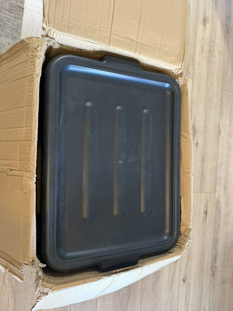 3 Pack 20 x 15 x 7 Black Polypropylene Bus Dish Plastic Restaurant Tub w/Lid of Set