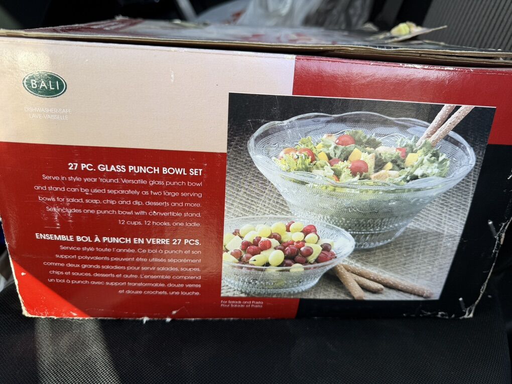 VenmoThis is such a beautiful set! It’s brand new (box has some wear due to being packed away). Set includes large bowl, small bowl/base, 12 cups, 12 hooks (no ladle). Pickup in West Valley. See my other listings too!