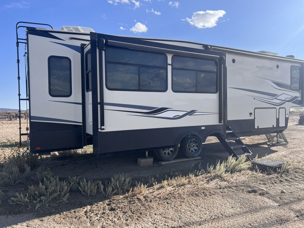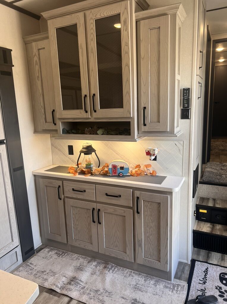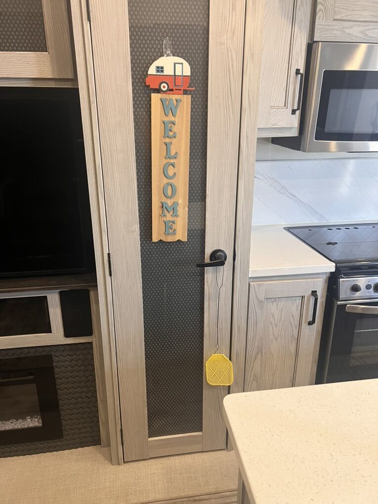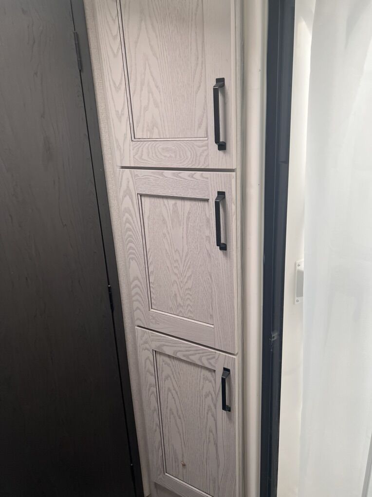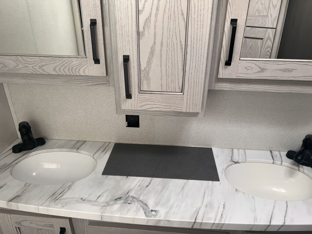 This trailer is absolutely beautiful, very well taken care of. King size bed, duel bathroom sinks with walk in shower, onboard vacuum, full size fridge, electric recliners and tons of storage and so much more.
