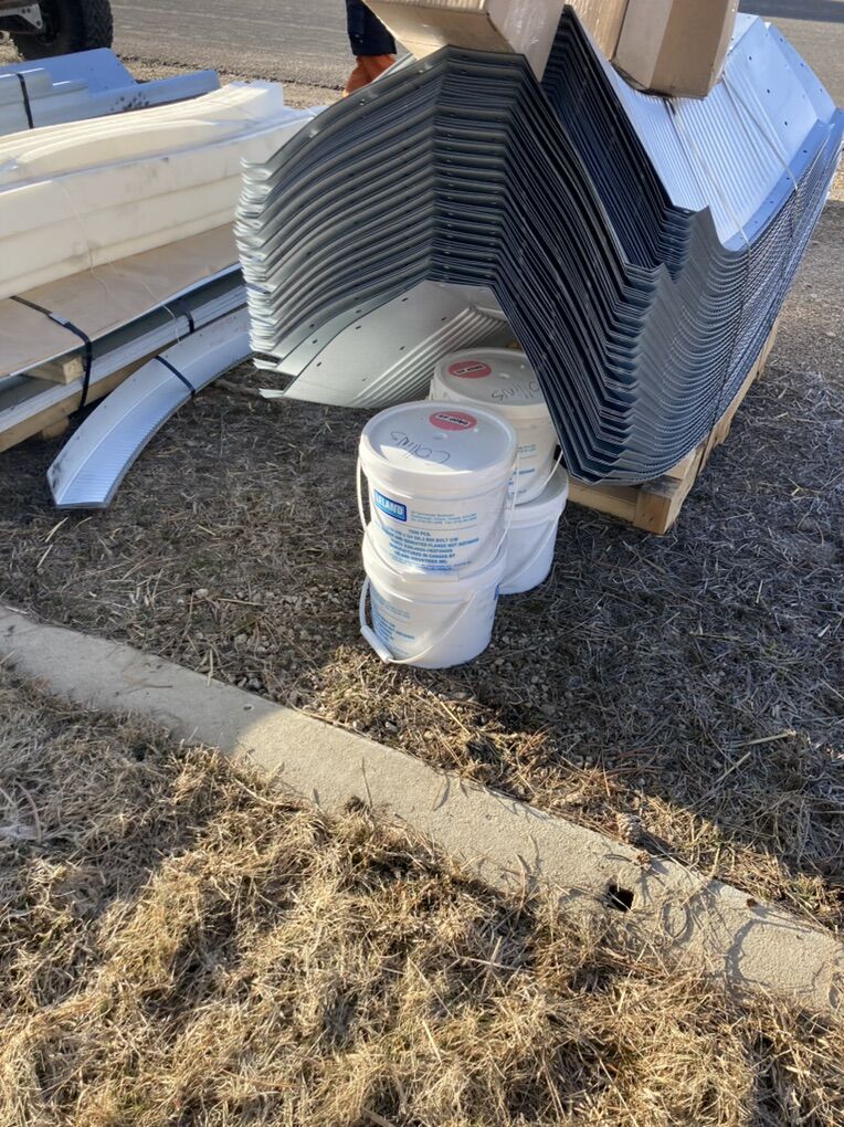 It comes with everything to build it, hardware and pieces, the only thing not included is the front wall- you can design it and frame it in however you like, or leave it open for 3 sided covered storage