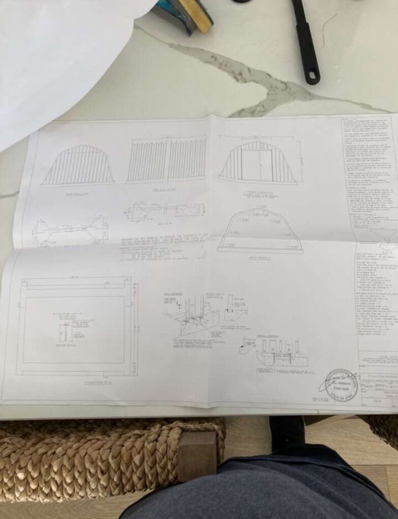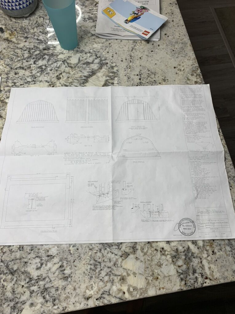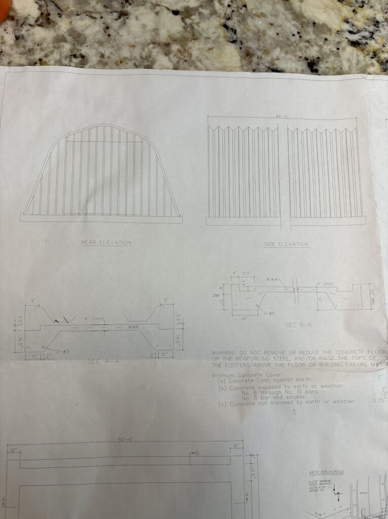 It has a 19’ tall peak, and it is designed to have a 14’+ garage door on it.