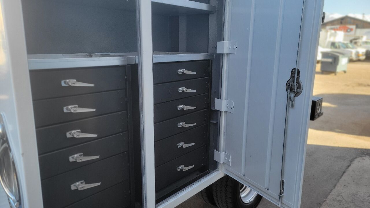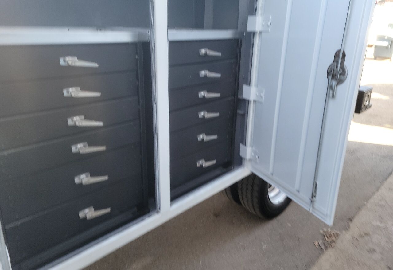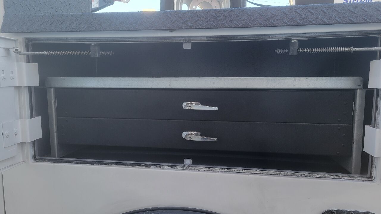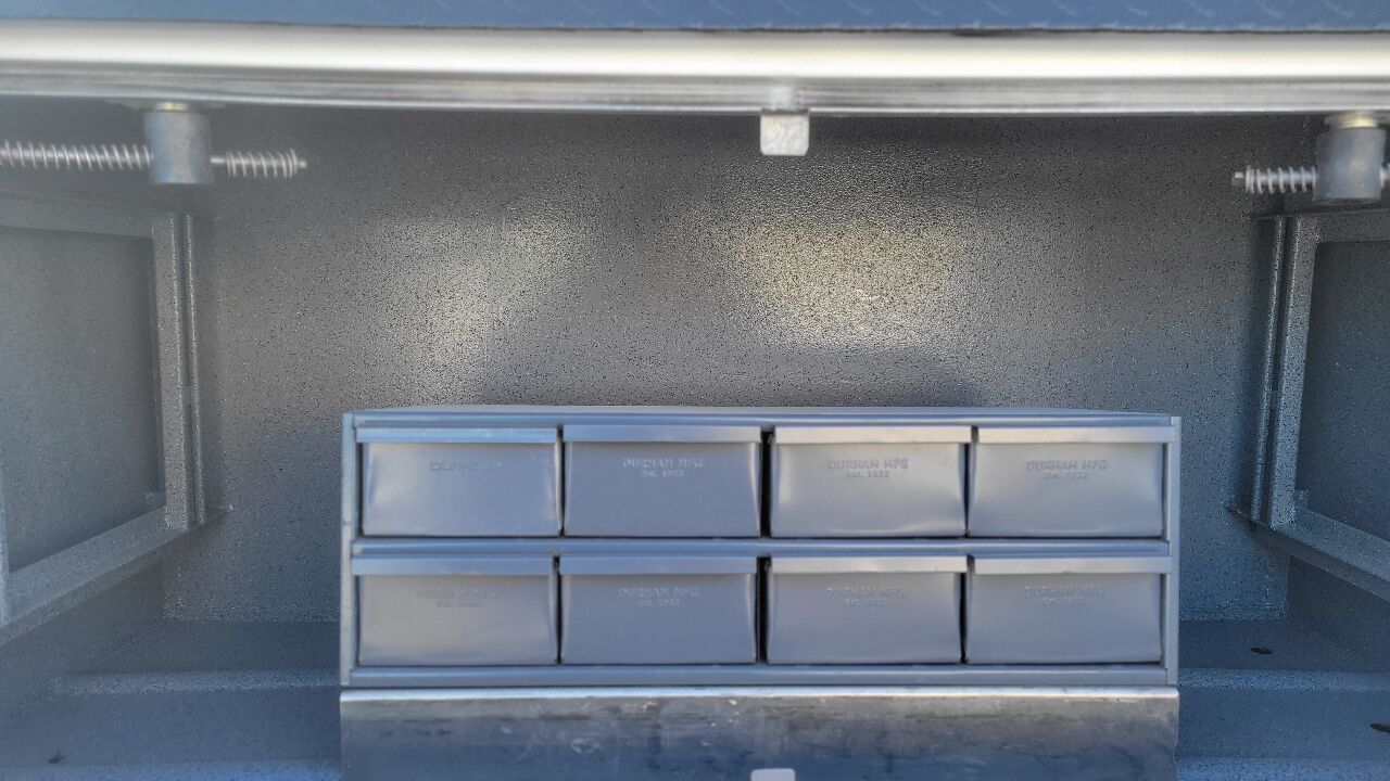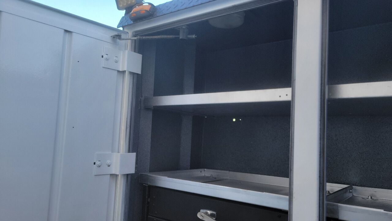 COMPRESSOR. REEL, TOOL BINS, WORK BUMPER, VICE. LIGHTS.
