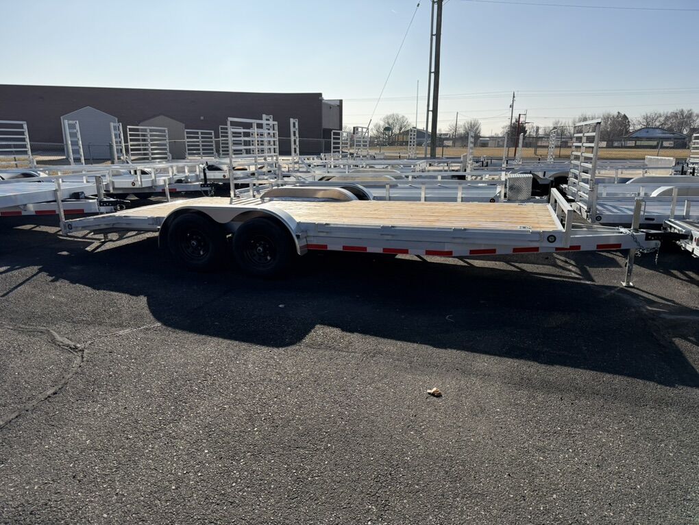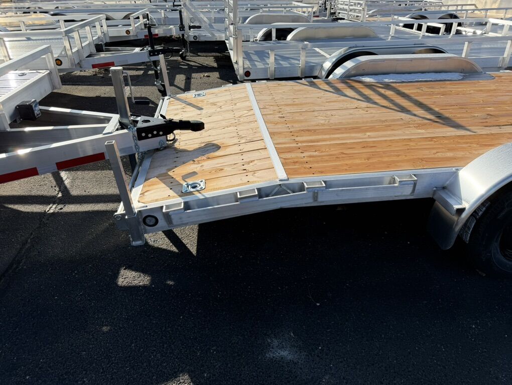 ZelleThree types available in stock standard car hauler and car hauler with a dovetail also full aluminum deck car hauler. Aluminum wheel upgrade available on all trailers. Black steel wheels are standard. Electric brakes on both axles and removable left side fenders for wide loads and forklift use. Call Dee 801-668-6266 prices start at 7990