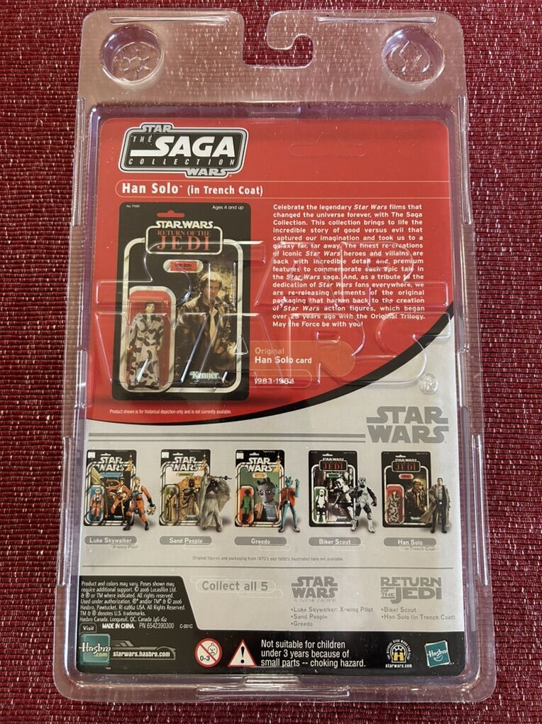 ApplePayHAN SOLO (Camo Trench Coat) STAR WARS TRILOGY RETURN OF THE JEDI with Factory Clam Shell production of the 1970’s Original Mint Card Star Wars Collectible Figurine