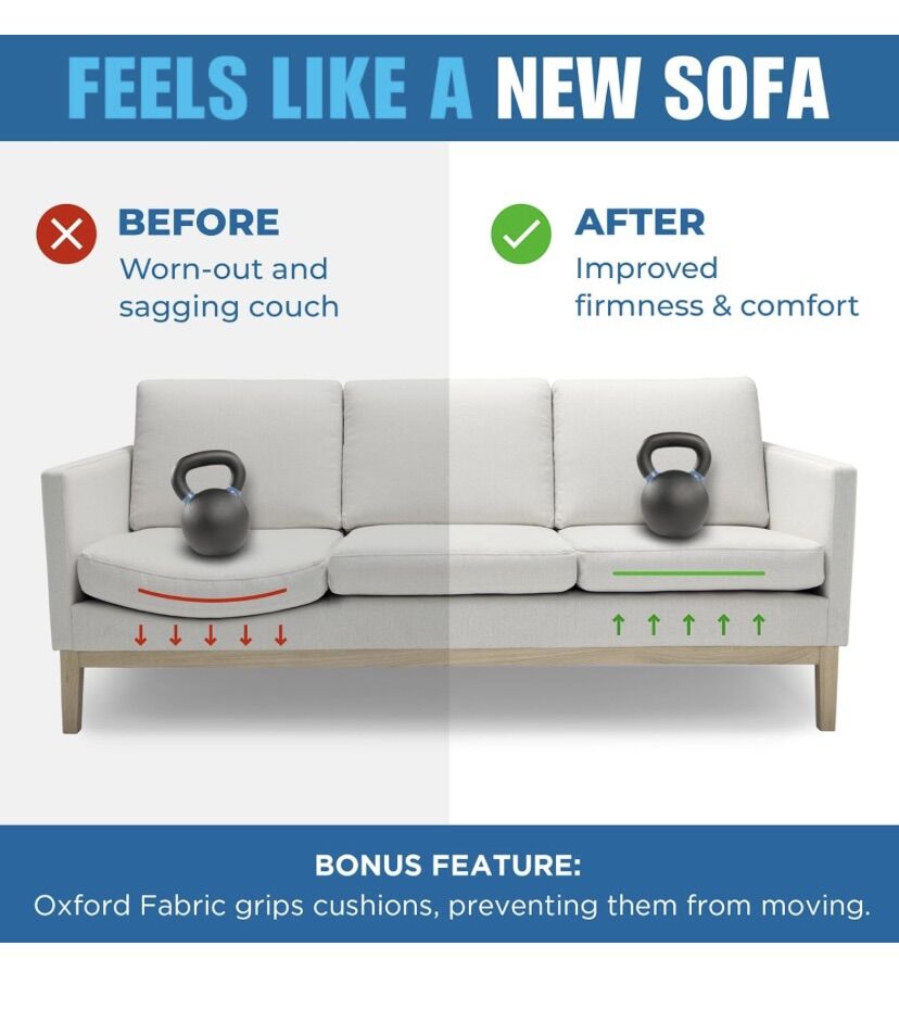 VenmoMeliusly Heavy Duty Couch Cushion Support for Sagging Cushions (21x79) Reinforced Wood Sofa Cushion Support Board for Sagging Seat, Deep Couch Supporter for Under The Cushions, Loveseat Oxford 600d THE ORIGINAL SOFA SUPPORT BOARD - As featured in Digital Journal, FOX 28, Daily Herald, and more. We are pioneers of this product's design and materials. Many brands have tried to replicate and imitate us over the years, but none match our expertise and years of experience in the furniture support industry.