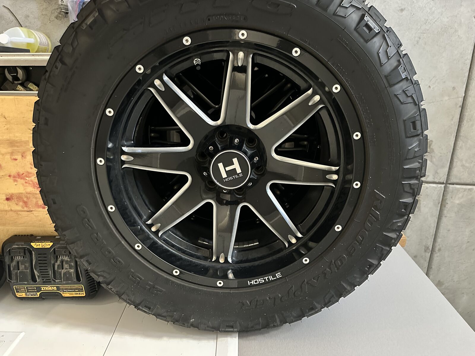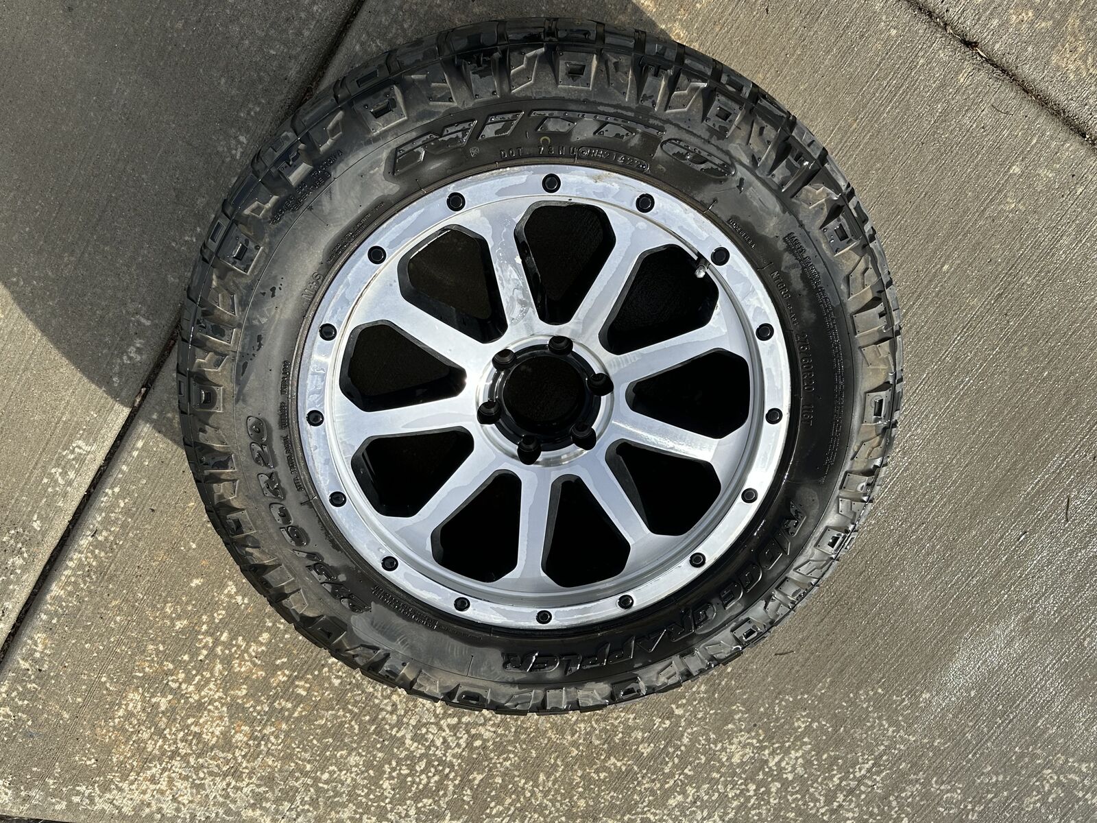 VenmoSelling a complete set of wheels and tires for a Ford F150. Hostile Alpha wheels with 275/60R20 NItto Ridge Grapler tires with new TPMS sensors. These were on my 2020 F150. I just put new tires on my truck at discount tire in June with the new TPMS sensors and have the receipt. The tires were only on the truck for 8k miles and have almost no wear on them. I put the stock wheels back on the truck to turn in and wont be getting anthoher F150 so have no need for these now. Having the TPMS sensors make it super nice to swap wheel without having to swap sensors back and forth between wheels. I also have a full size spare from a previous set of tires on a brand new wheel that fit in the factory spare location. Wheel does not match as you can see if the photos. Please text if interested.
