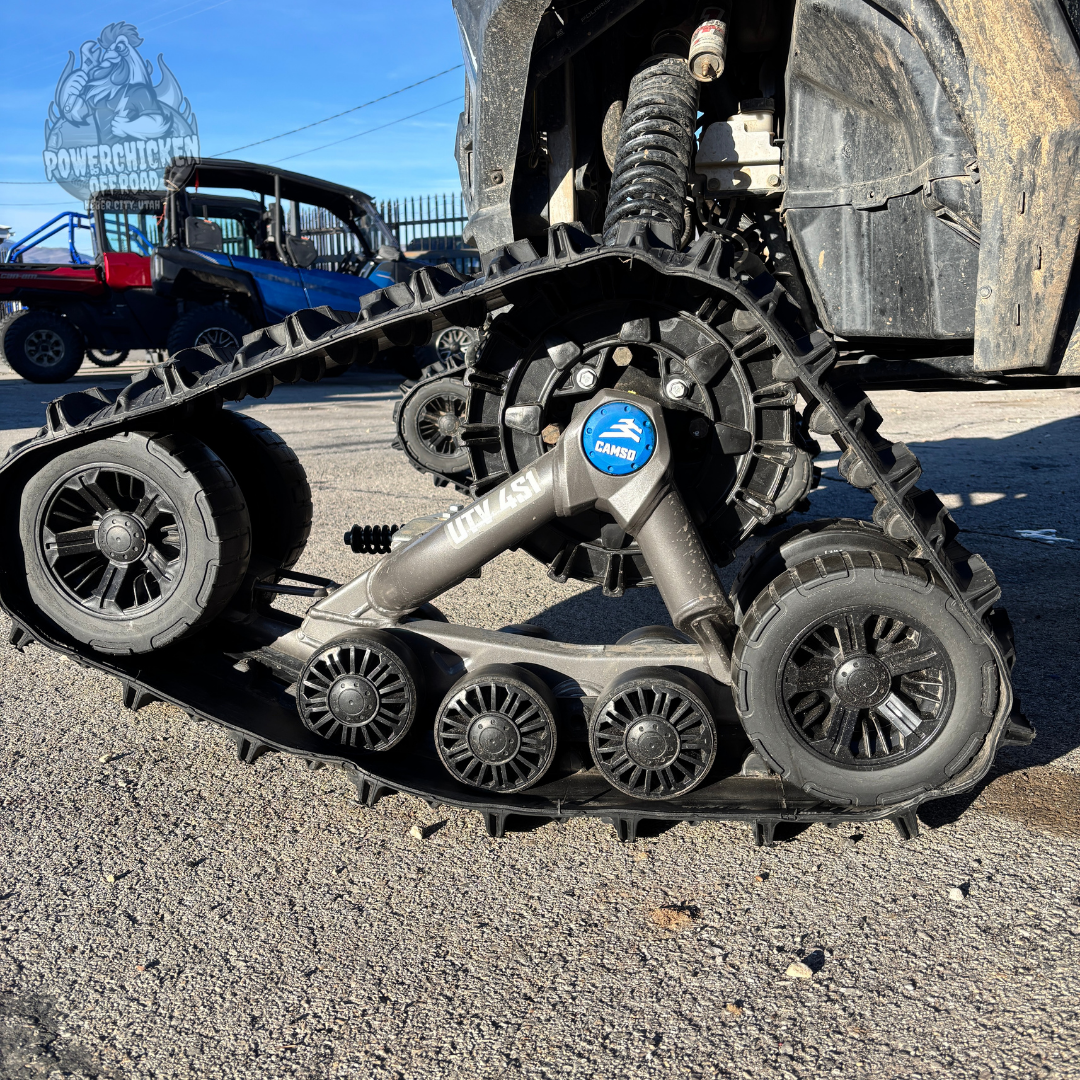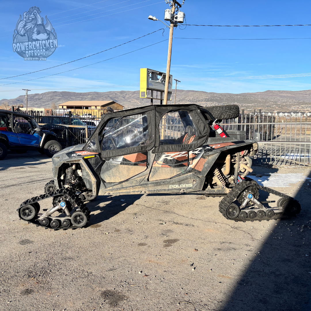 Runs and drives. Good working condition. Regularly maintained. ──────────────────────────── Modifications / Aftermarket Camso UTV 4S1 Track System (approx. 3 years old) Dalton Clutch Kit Zbroz Shock Springs (all around) Super ATV Rear Lower Control Arms & Hitch Polaris RZR XP Turbo High Clearance Boxed Radius Arms Synthetic Rope Winch LED Light Bar above windshield Bluetooth stereo (ceiling mounted) Interior large speaker Windshield and rear panel Enclosed zip plastic soft top Storage box / plastic tool box Spare tire mounted on rear roll cage Garmin GPS / touchscreen display Fire extinguisher mounted on rear roll cage ──────────────────────────── Maintenance Notes Full Amsoil fluids front, rear, and throughout vehicle Oil changes every 1,000 miles or less Air filter cleaned every 250–500 miles depending on terrain ──────────────────────────── What’s Included Camso track system Spare tire Five matching wheels and tires with approximately half life remaining. Rear bench seat for 3 child passengers or two adults. Front middle booster seat with shoulder harness Shoulder harnesses for all six seating positions Garmin GPS unit ──────────────────────────── Local Pickup Powerchicken Offroad 1740 US-40, Heber City, UT 84032. ──────────────────────────── Buyer Note