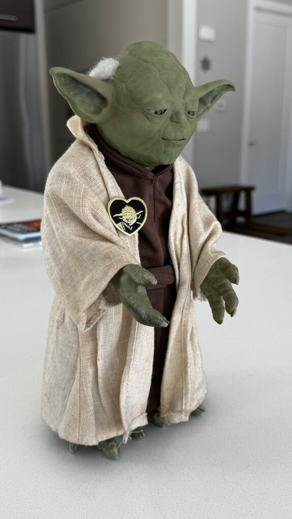 Venmo13” talking Yoda. In Play mode he speak random Yoda wisdom every minute. When pressing his palms he will speak. When pressing both palms he will tell the story of the empire.