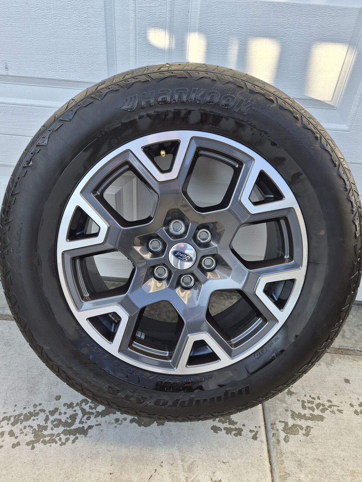 A set of 4 20" Ford factory wheels with 275/60R20 Hankook tires of a 2024 STX F150.