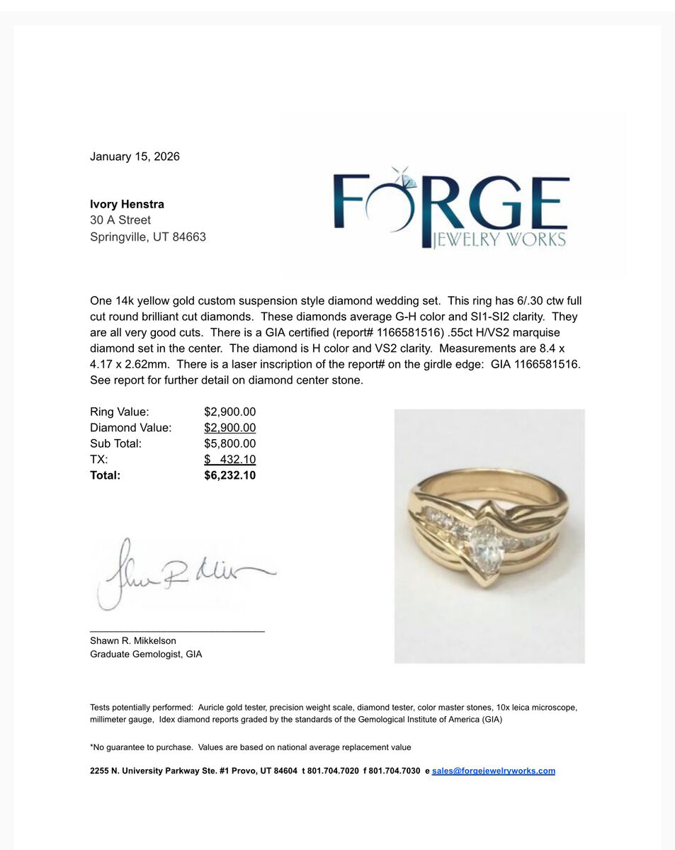 Diamond grading details included in report for serious buyers.