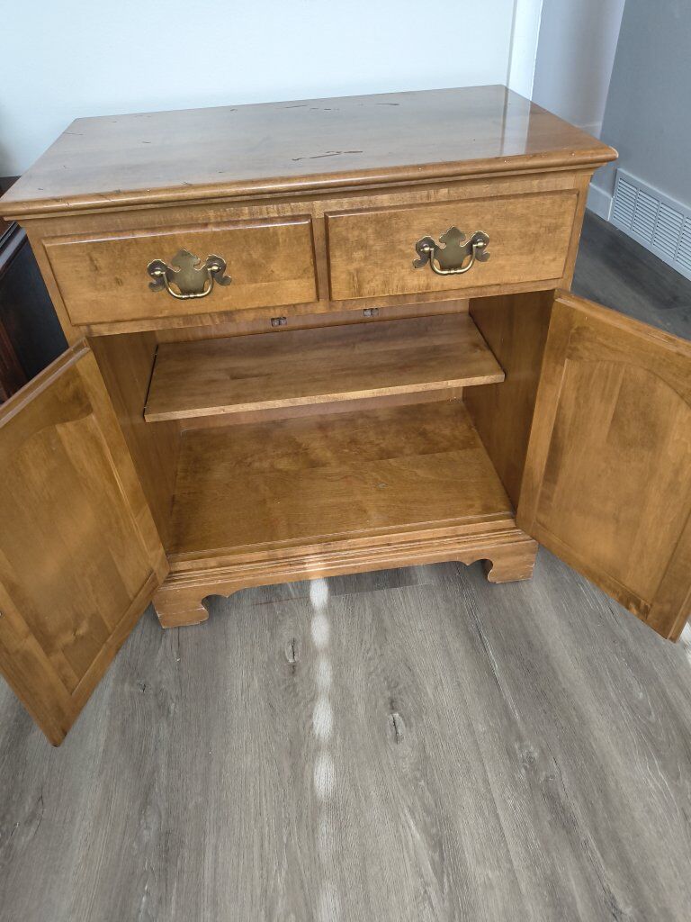 Ethan Allen maple storage cabinet or night stand with 2 drawers, 28"h, 26" w, 16" d, good condition $150.00 cash.