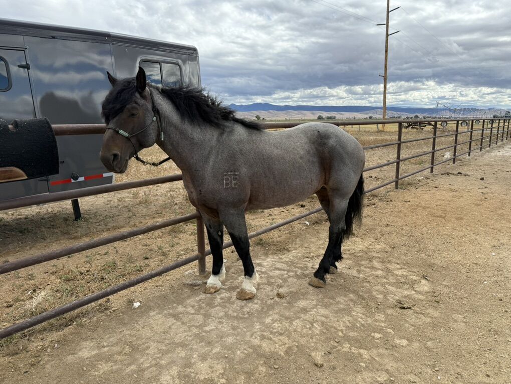 Introducing Gus, a 6-year-old, 15.2h 1/2 Draft Blue Roan stallion with the perfect blend of Quarter Horse athleticism and Brabant power. Gus is the kind of horse everyone wants in their barn — quiet, honest, and always ready to work. He is a true “calm horse” type with a great mind, a strong work ethic, and a willing attitude. He is built correctly with good bone and substance, yet stays athletic and smooth in his movement. Gus excels as a dependable, hard-working horse that is ready to please and easy to handle. His temperament makes him suitable for producing foals that are not only strong and capable, but also calm, trainable, and people-friendly. He has worked alongside mares and geldings with no fuss. Last 3 pics are of his parents and his mom’s genes. Why Breed to Gus: 6 years old, sound and durable 15.2h Blue Roan with excellent presence Quarter Horse x Brabant cross Correct conformation with strong bone Athletic, smooth-moving, and willing Quiet-minded, honest, and hardworking Gus is an excellent choice for breeders looking to add strength, mind, and versatility to their program, whether for ranch work, performance, or all-around use. Located in Centerfield, Ut Stud Fee: $600