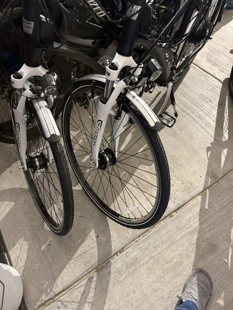 ZelleLike new condition electric bikes. Just rebuilt both batteries with new cells. Light weight with battery 50lb. Fun e-bikes with front wheel light generator for front and rear independent of battery. Comes with keys, chargers, batteries. Selling as pair only. No trades or lowball, these were $5600 new.