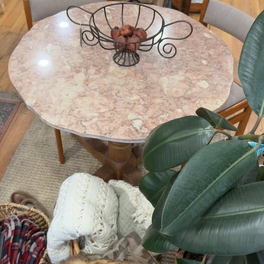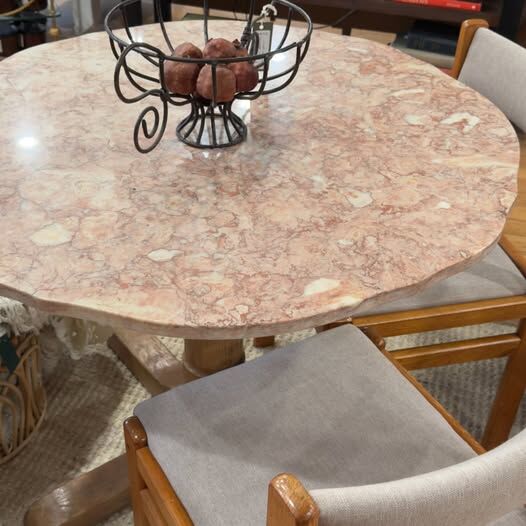 ZelleRare Vintage Pink Portuguese Marble Podium Bistro Dining Table