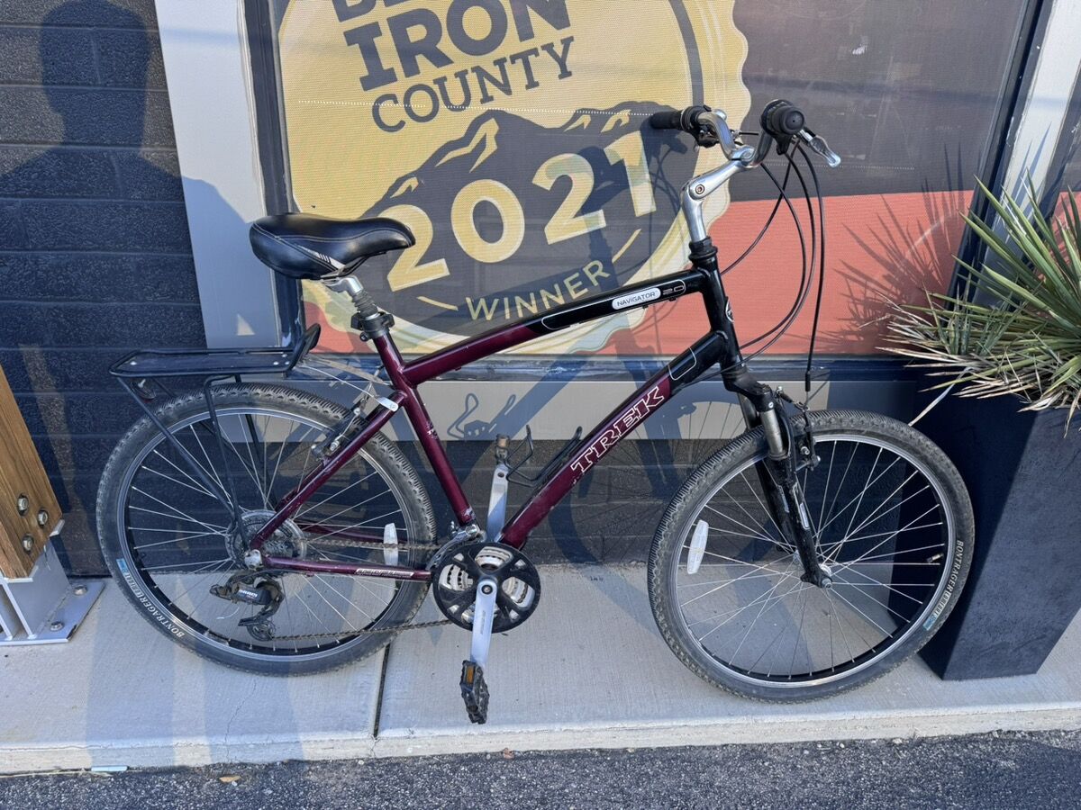 GooglePayMOUNTAIN BICYCLE: TREK BICYCLE MODEL NAVIGATOR 2.0, SERIAL NUMBER WTU096C0383C, MAROON, MOUNTAIN BIKE 26" WHEELS, 21 SPEED. FRONT SUSPENSION. shop.worldclasspawn.com - pickup only