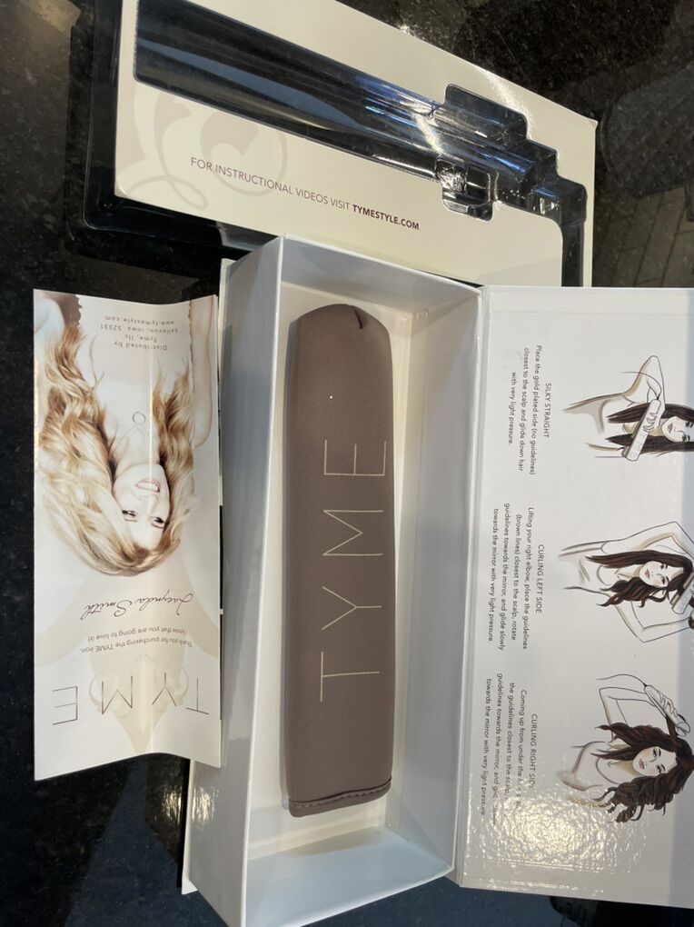 VenmoElegant TYME styling tool in gold and beige. Perfect for versatile hair styling.