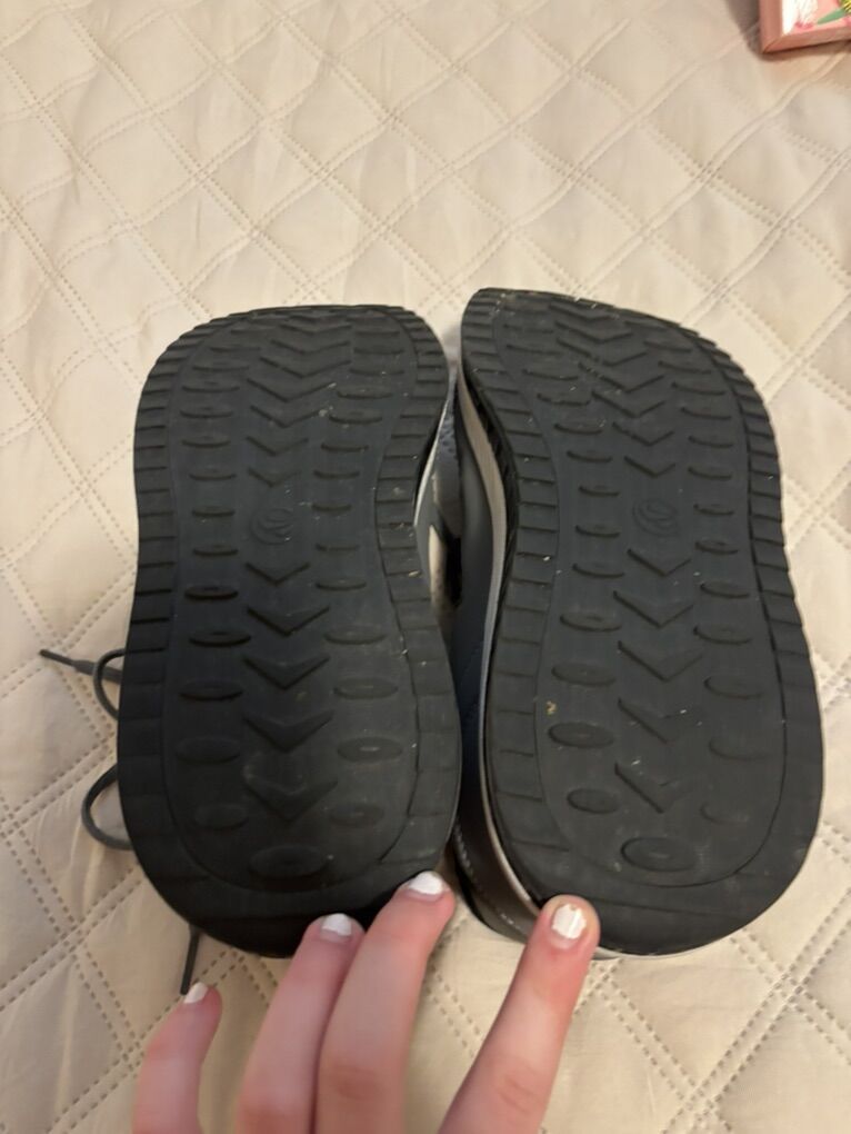 Used Women’s walking shoes for plantar fasciitis (size 10) Color: medium grey/black/white Great condition and very comfortable shoes