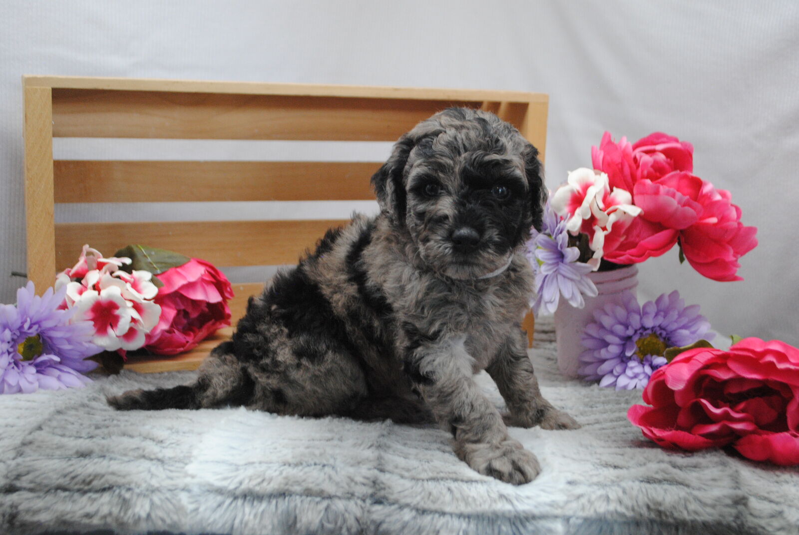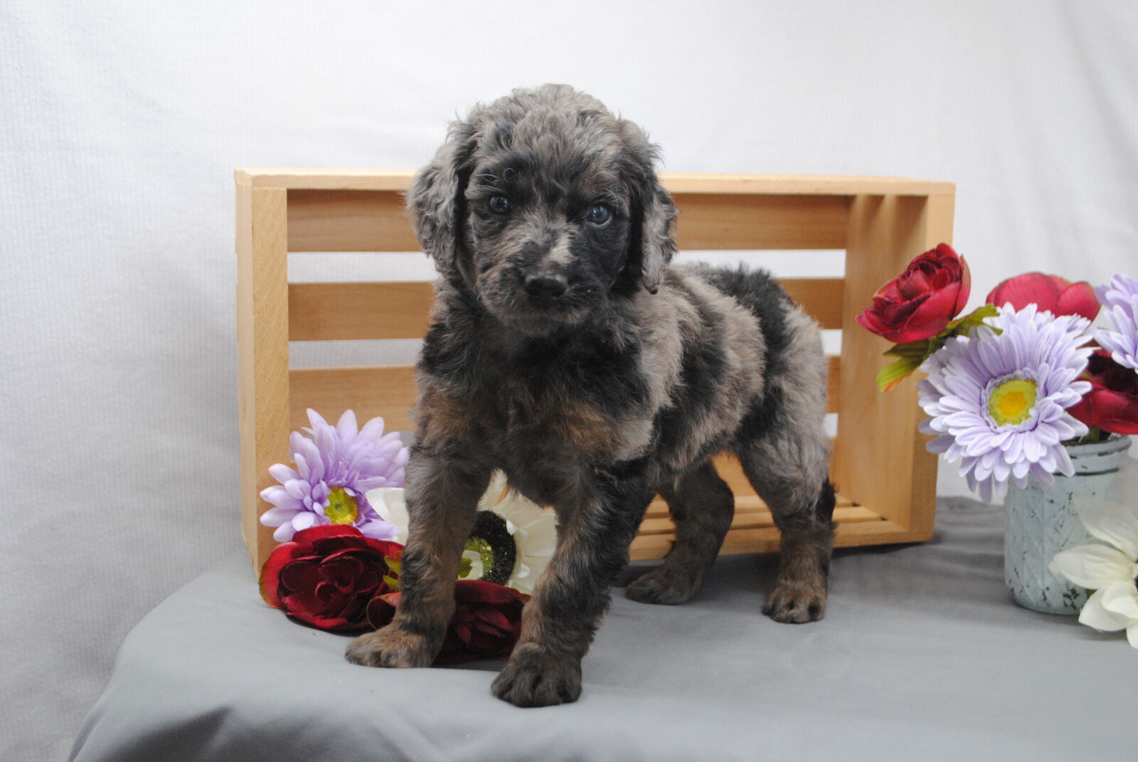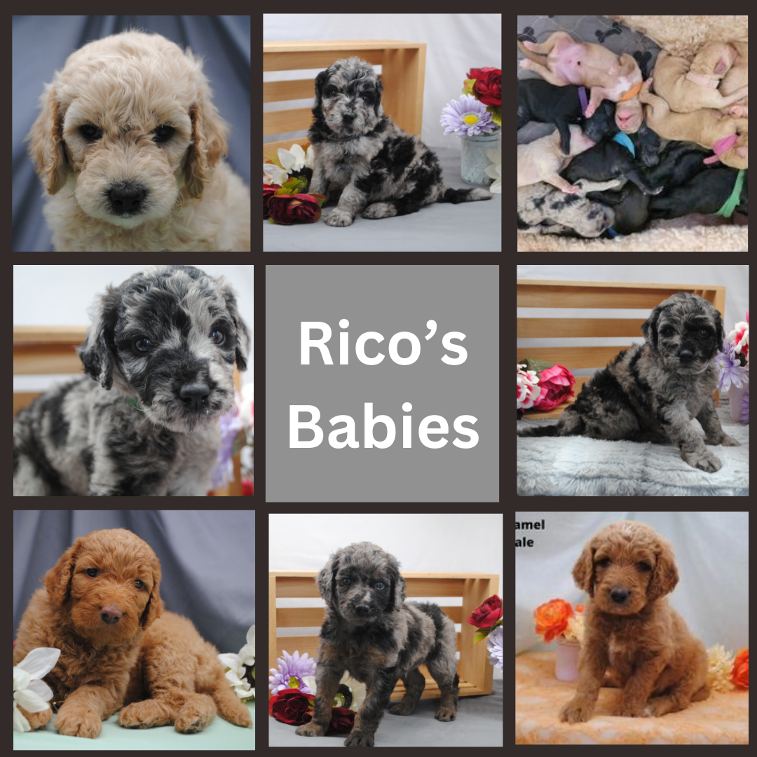 Rico is our CKC 32lbs/18.5inches tall F1 Goldendoodle. He is blue merle and carries red- perfect for Goldendoodle litters or other doodle mixes! (lots of pics of his babies, 2 pics are Rico)