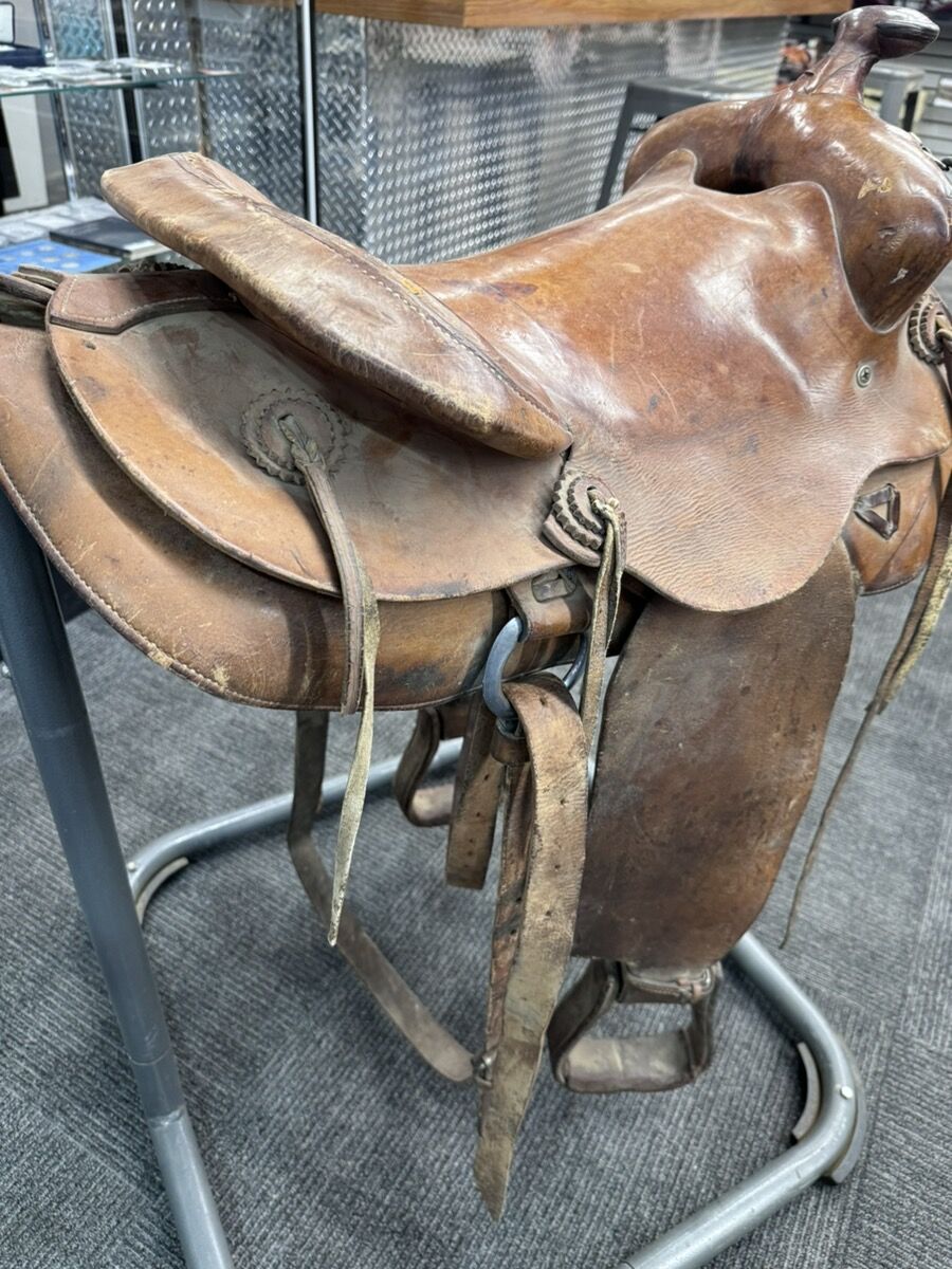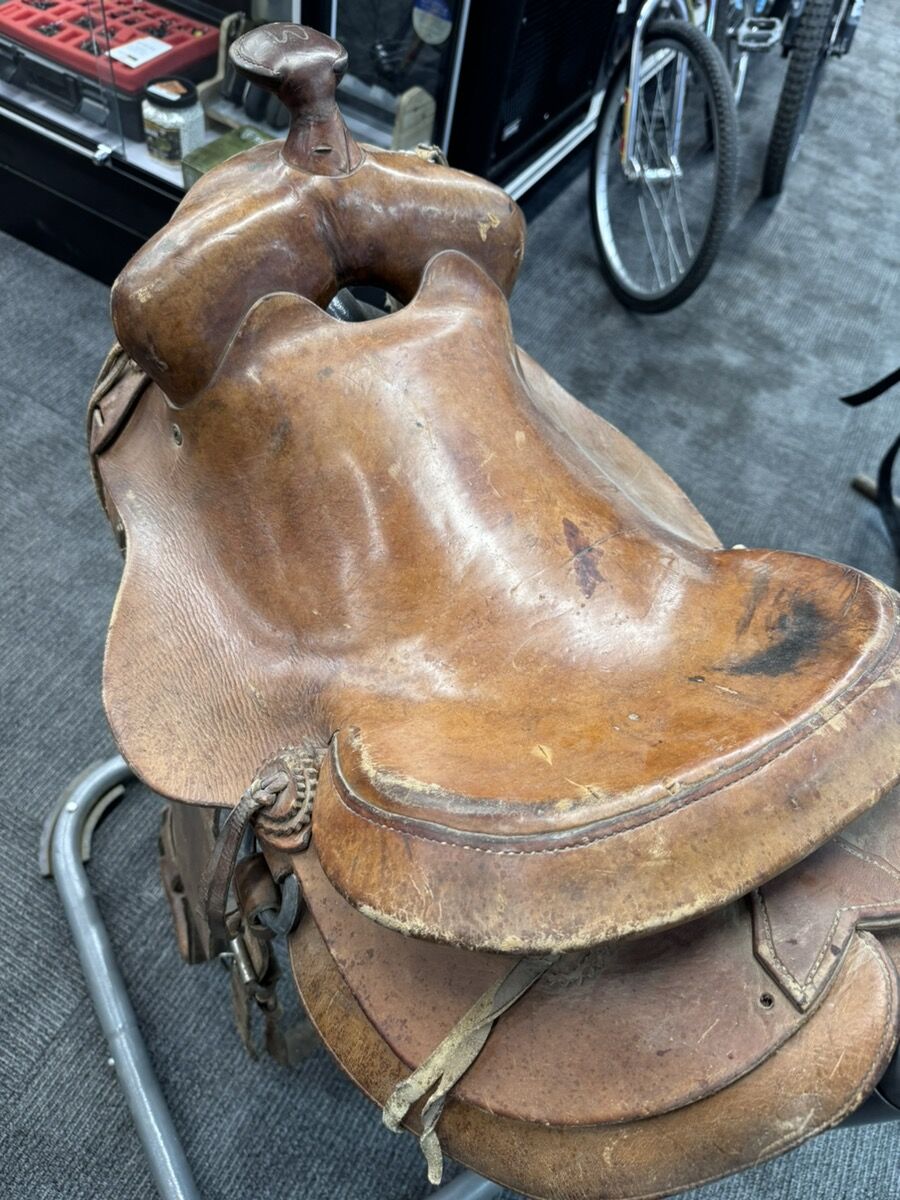 GooglePay16" BROWN LEATHER WESTERN SADDLE. shop.worldclasspawn.com