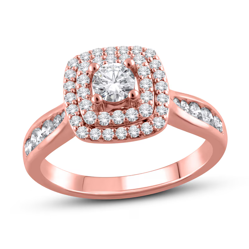 VenmoCrafted by Jared Fine Jewelry, this refined diamond halo ring is set in luminous 14K rose gold and designed to capture light from every angle. A round center diamond is framed by a delicate halo, complemented by diamond accents along the band for a balanced, timeless silhouette.