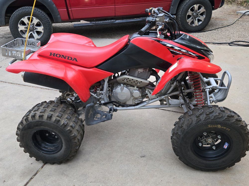 2005 Honda TRX400. Tuned up and ready to ride, After market front push bar, rear rack, and rims and tires. Has reverse. Runs strong, no issues