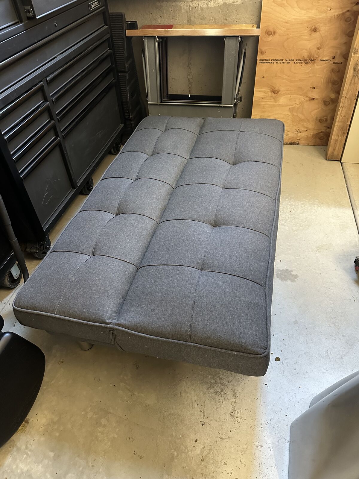 ApplePayGrey sleeper couch. Folds to a couch or flat for an extra sleeping place. Used but in good shape. Asking $40 OBO.