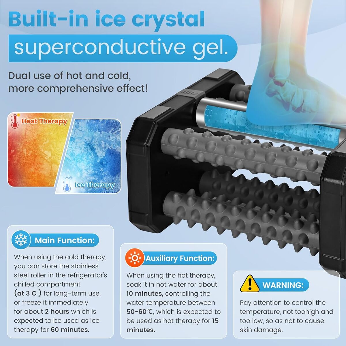 NEW IN BOX! Plantar Fasciitis Relief Massager with Ice Roller, Foot Massager Use Cold Therapy & Reflexology Design for Circulation and Instant Neuropathy Pain Relief, Reduce Foot Swelling for Daily Foot Health