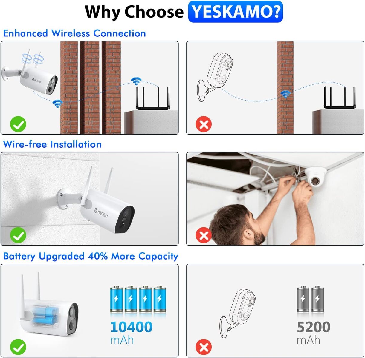 NEW IN BOX! Wireless Outdoor Security Camera, 10400mAh Rechargeable Battery Powered WiFi Camera YESKAMO 1080P Surveillance Camera for Home Security Wire Free Battery Camera Dual Antenna Motion Dection 2 Way Audio