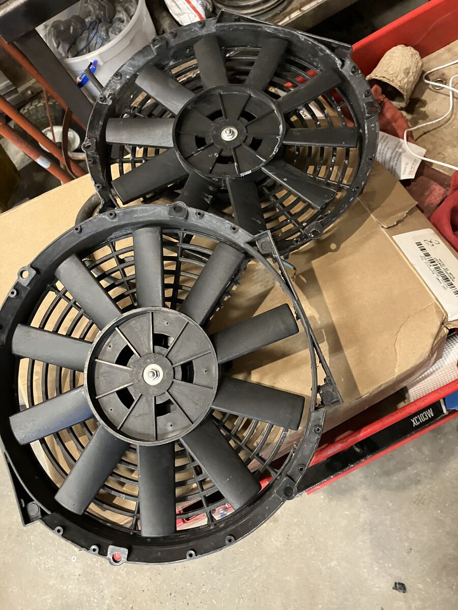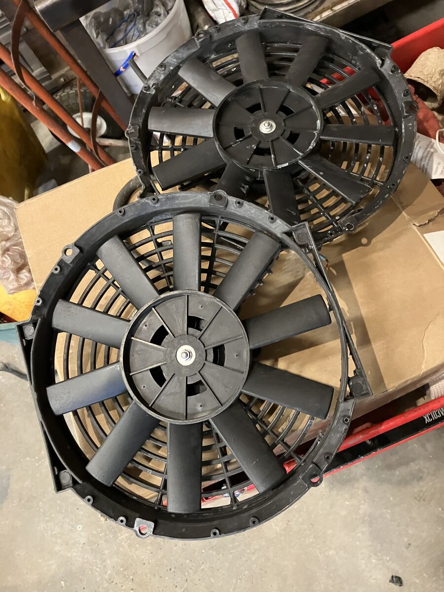 USED 12 INCH ELECTRIC FANS AND ONE NEW 14 INCH ELECTRIC FAN ALSO HAVE FLAT SHROUD FOR 12 INCH FANS ASKING $50 FOR DUAL FANS $50 FOR 14 INCH FAN OR any OFFER(S)