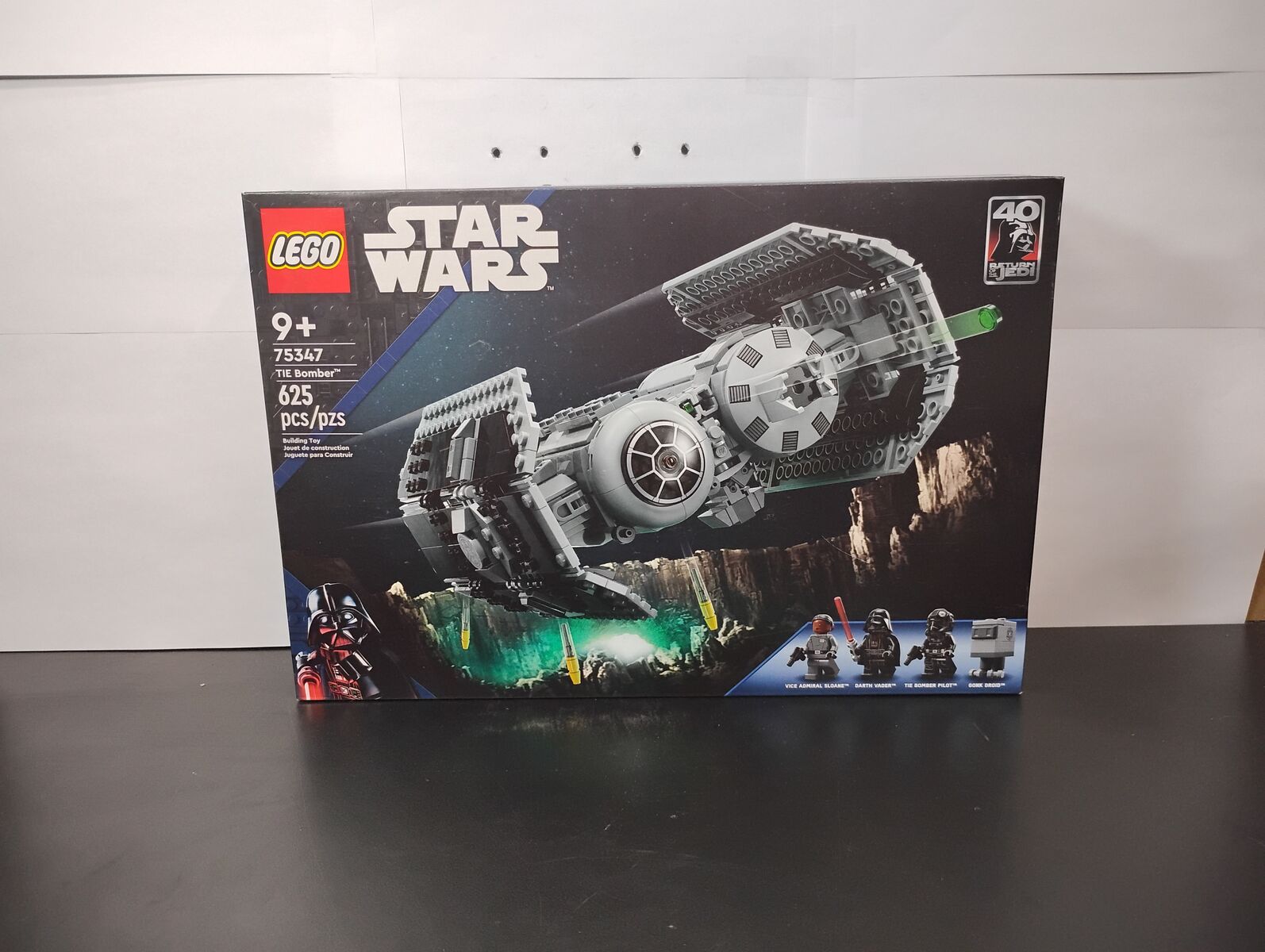 Star Wars: The Empire Strikes Back fans can play out Imperial missions to defeat the Rebel Alliance with this LEGO® brick-built TIE Bomber (75347) starfighter toy. It features an opening minifigure cockpit, a torpedo-dropping function and 2 stud shooters. A top gift idea for Star Wars™ fans aged 9 and up, this action-packed, buildable toy playset also includes Darth Vader, Vice Admiral Sloane and TIE Bomber Pilot LEGO minifigures with weapons, plus a Gonk Droid LEGO figure and a cart to transport torpedoes to the TIE Bomber.