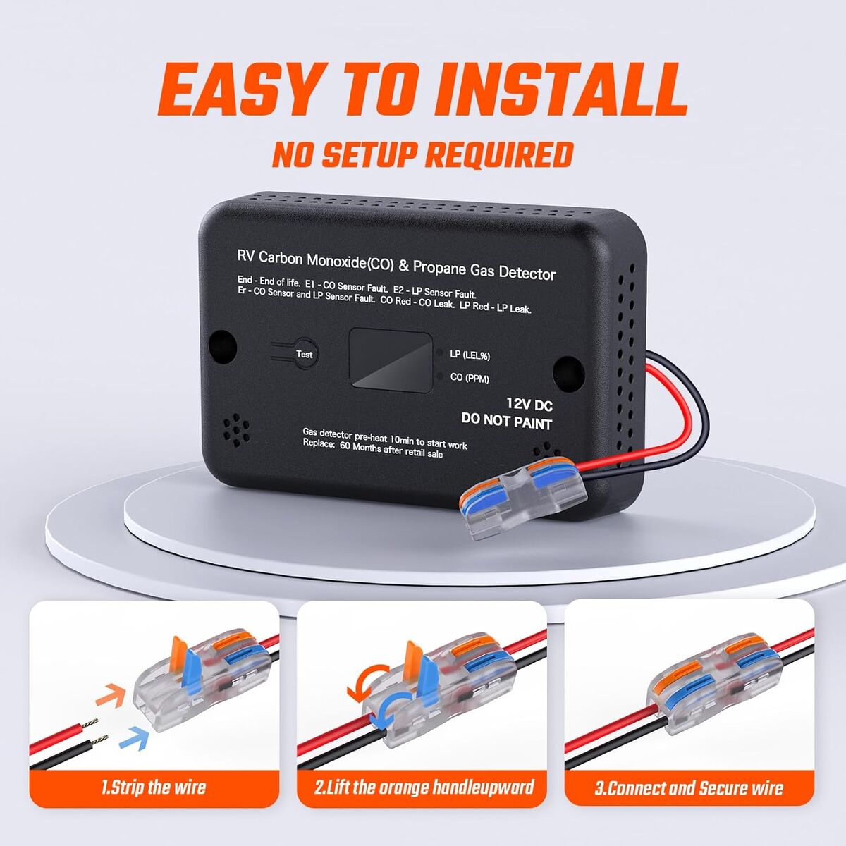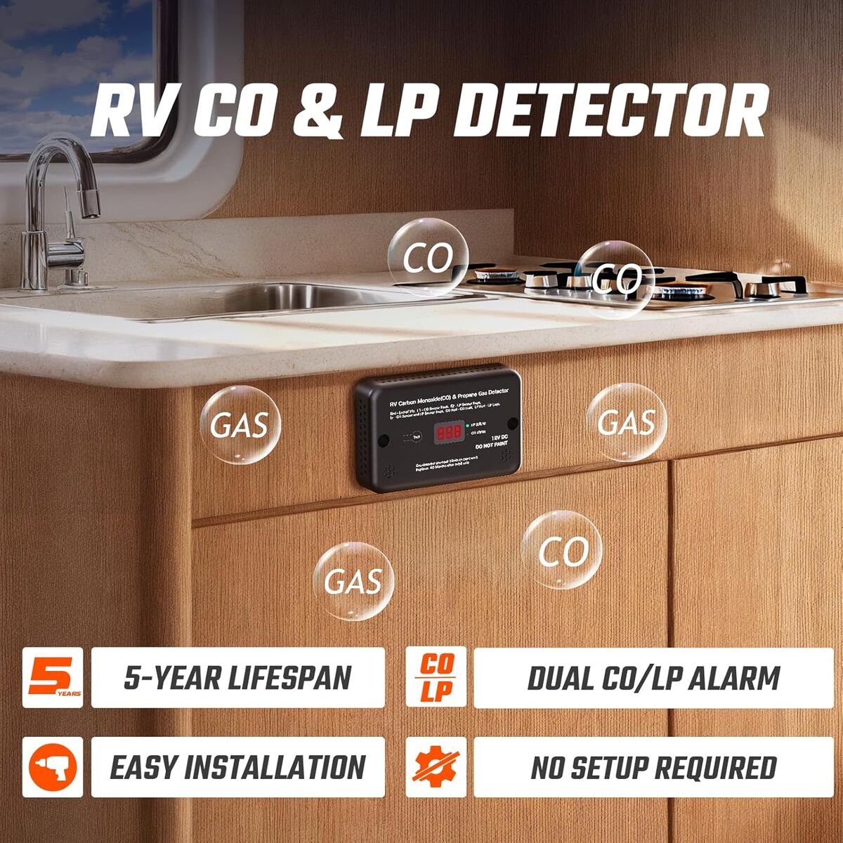 NEW IN BOX! RV Carbon Monoxide & Propane Gas Alarm, Dual CO/LP Detector with Separate LCD Indicator Lights and Digital Display, 12V DC for RVs, Travel Trailer, Camper, Black