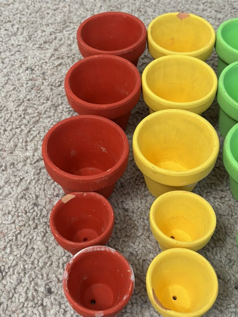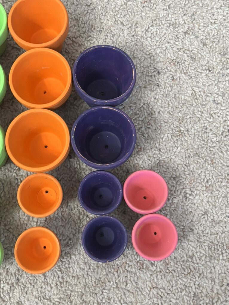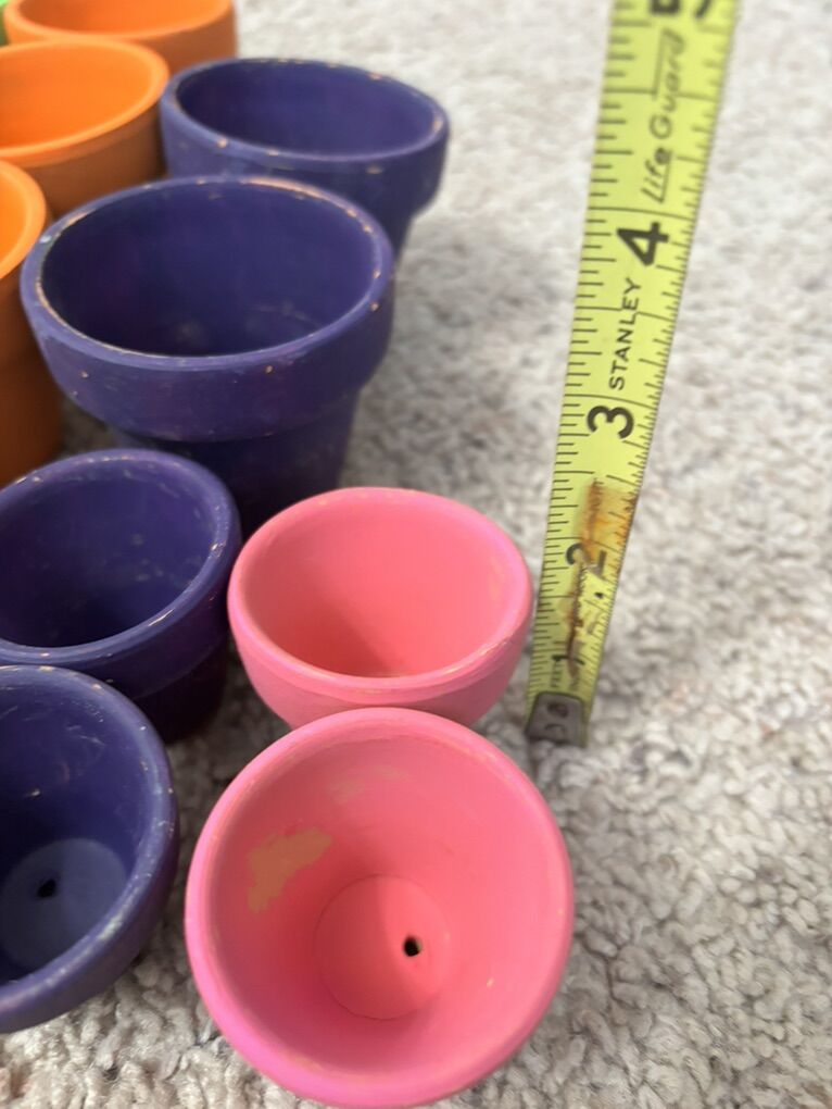 26 Mini Clay Terracotta Flower Mini POT Planter Succulent Garden, Home Decor. Size: 14-2.5” and 12- 1.5” Mini Terracotta Clay Flower Pots with Drainage Holes for for Tiny Cactus Herb lithop,Small Succulent Planter Nursery Plant Pot for Home Garden Table DIY Hand Craft Gift Decoration Multi Color Red Yellow Light Green Orange Purple Pink No advance payment Payment and pick up are at the Same time.