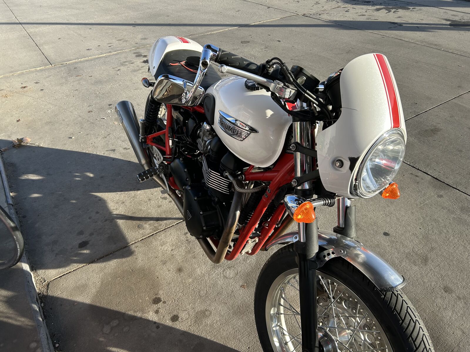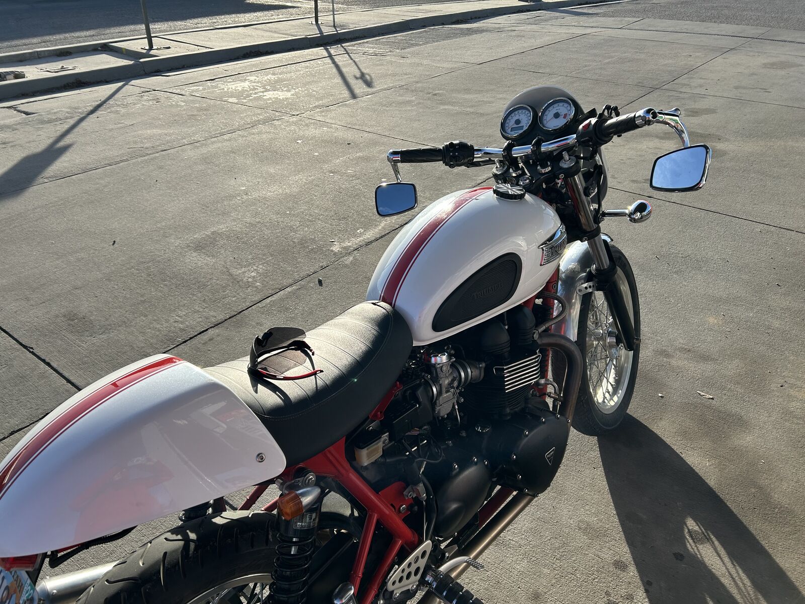 Here is an unusual bike that is not for everyone, and Spring is right up your alley. It was designed to race hard between cafe's in UK. It's low, fast with very low miles. Recent tune with new battery, filters, clean tank, fuel injector cleaners and tune. Has a bin full of extra parts. Windscreen, special exhaust. Must sell for a neighbor. Asking $3700 or reasonable offer. Less than 3,000 miles. Has battery minder, cover. Starts up right now.