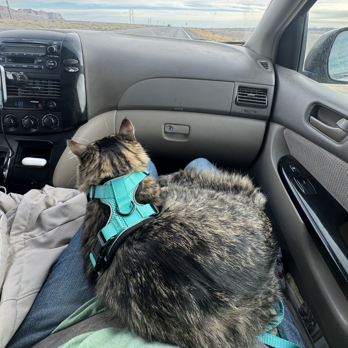 He is litter trained, and has been raised indoors with some outdoor time. He has traveled in the car, been on leash and harness, even took a whole trip to Moab with us.