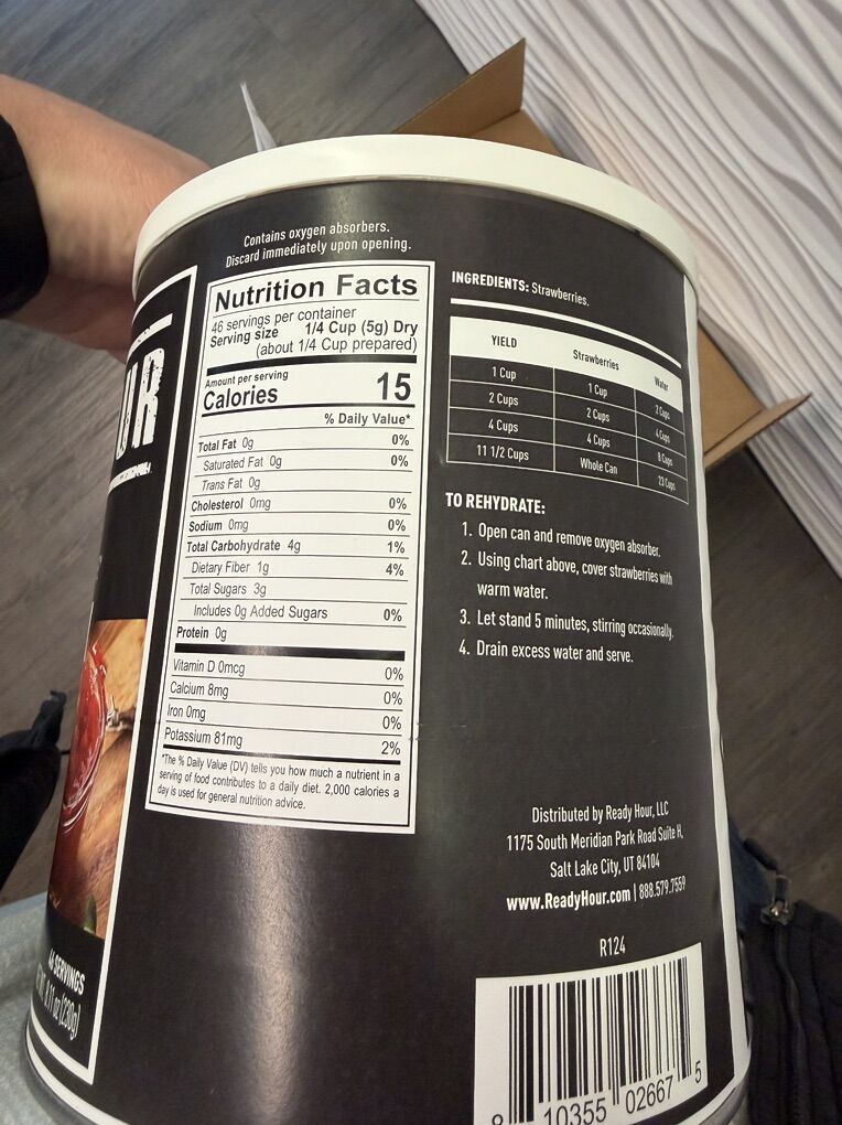 ZelleUp to 30 year shelf life #10 cans of freeze dried strawberries. $17 per can. $16 per can for 6. $15 per can for 12+. 8.11 oz. 46 servings. Text me 801-836-0494 located in Saratoga . Manufacture date is June 2025