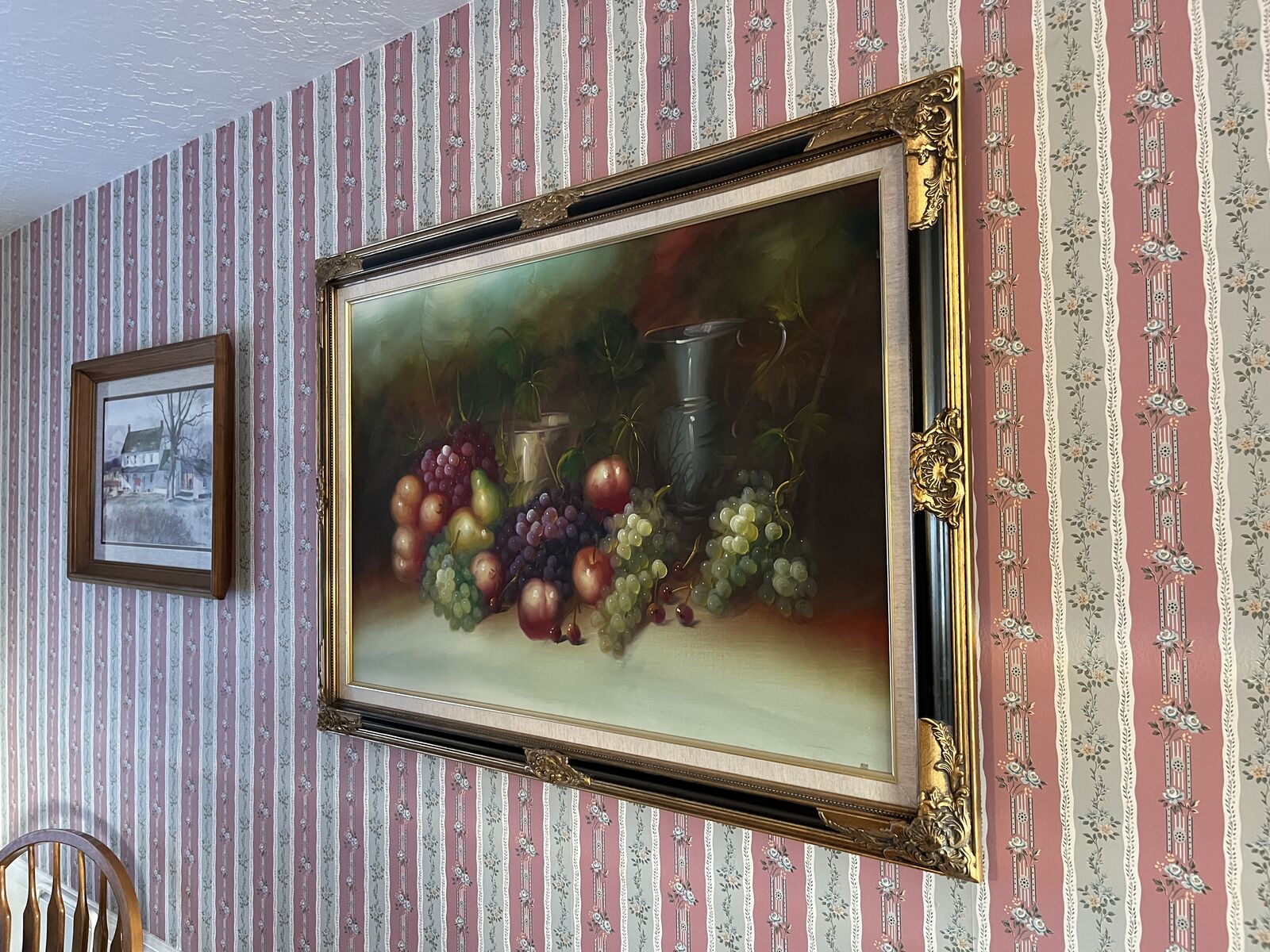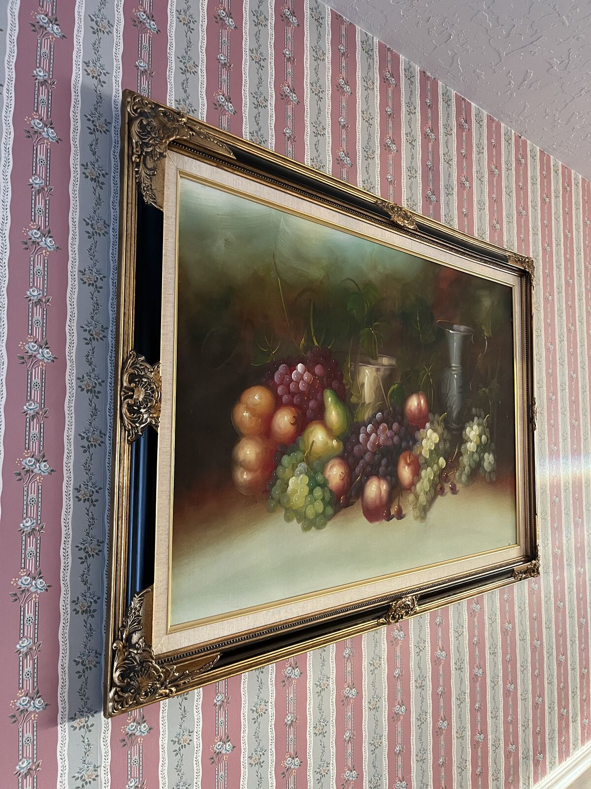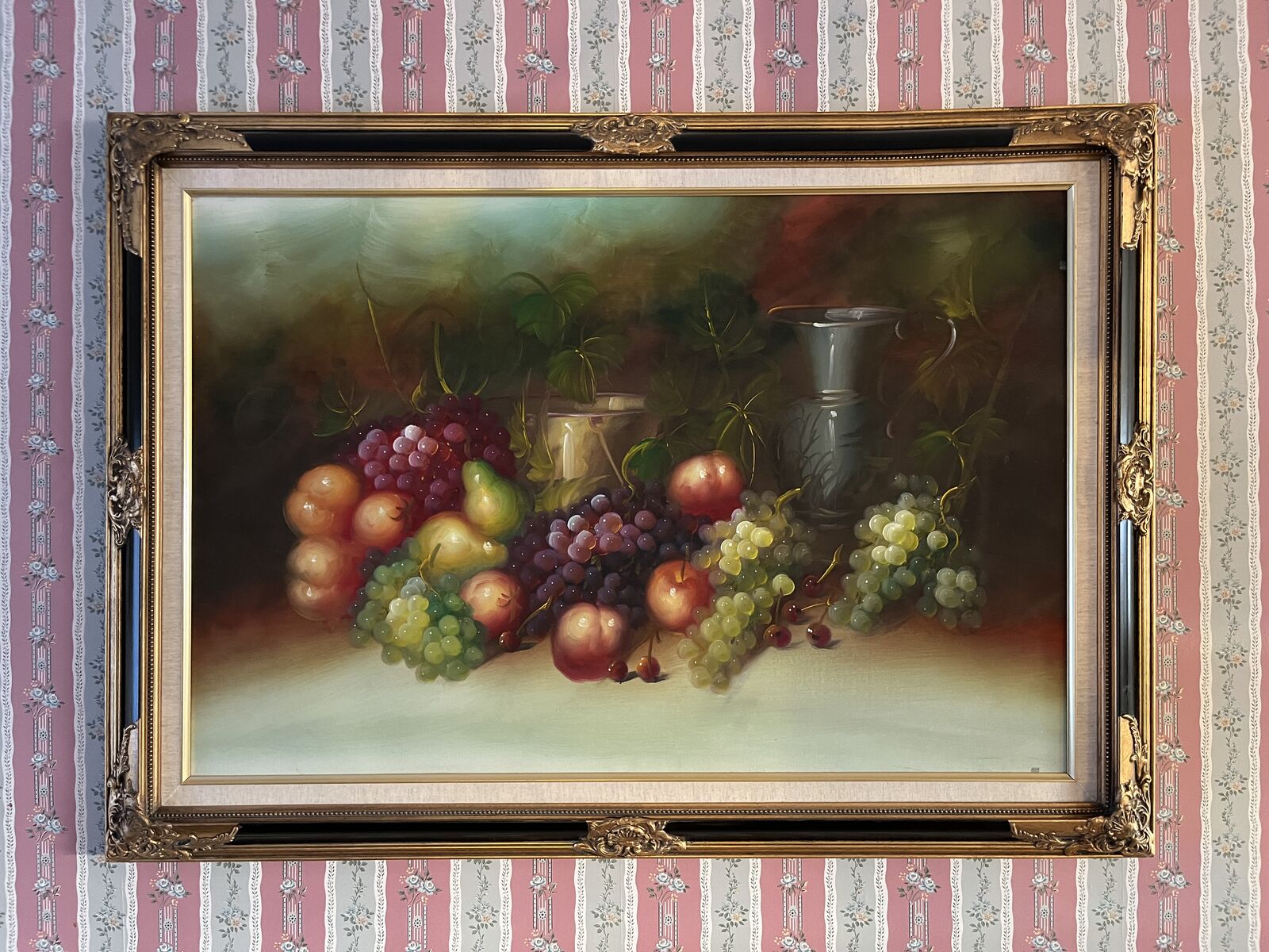 ApplePayOriginal hand-painted still life (not a print), beautifully framed in a large ornate carved wood frame. Artist is unsigned, but the painting is original and has great color, depth, and classic appeal.