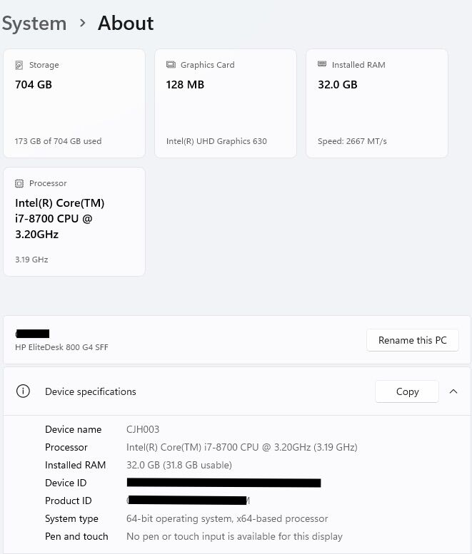 ApplePaySelling an upgraded HP EliteDesk 800 G4 Small Form Factor (SFF) desktop. This is a powerful, compact workstation that I have personally upgraded to handle heavy multitasking and modern connectivity. Key Features: • Processor: Intel Core i7-8700 (6 Cores / 12 Threads @ 3.20GHz) • Memory: 32GB DDR4 RAM (Upgraded for seamless multitasking) • Storage: 704GB Total SSD space (Fast boot and load times) • Networking: Added an AORUS Wi-Fi & Bluetooth PCIe card for fast wireless • OS: Windows 11 Pro (Clean install and activated) • Condition: Excellent, runs quiet and very fast. Includes power cable. Perfect for a home office, coding, or student workstation.