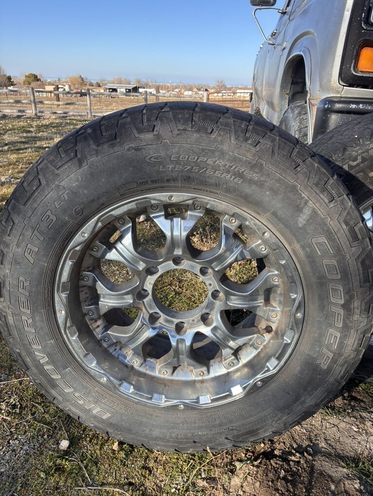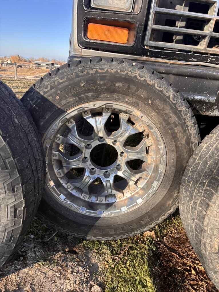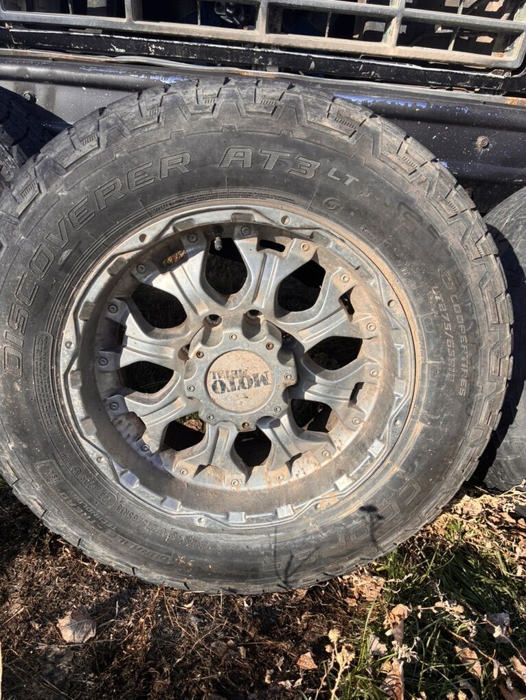 18 inch moto metal wheels. 2 have center caps 2 don’t. I would highly recommend putting new tires on them. They should fit on older 3/4 ton and 1 ton ford dodge and gm trucks. Open to trades price is OBO
