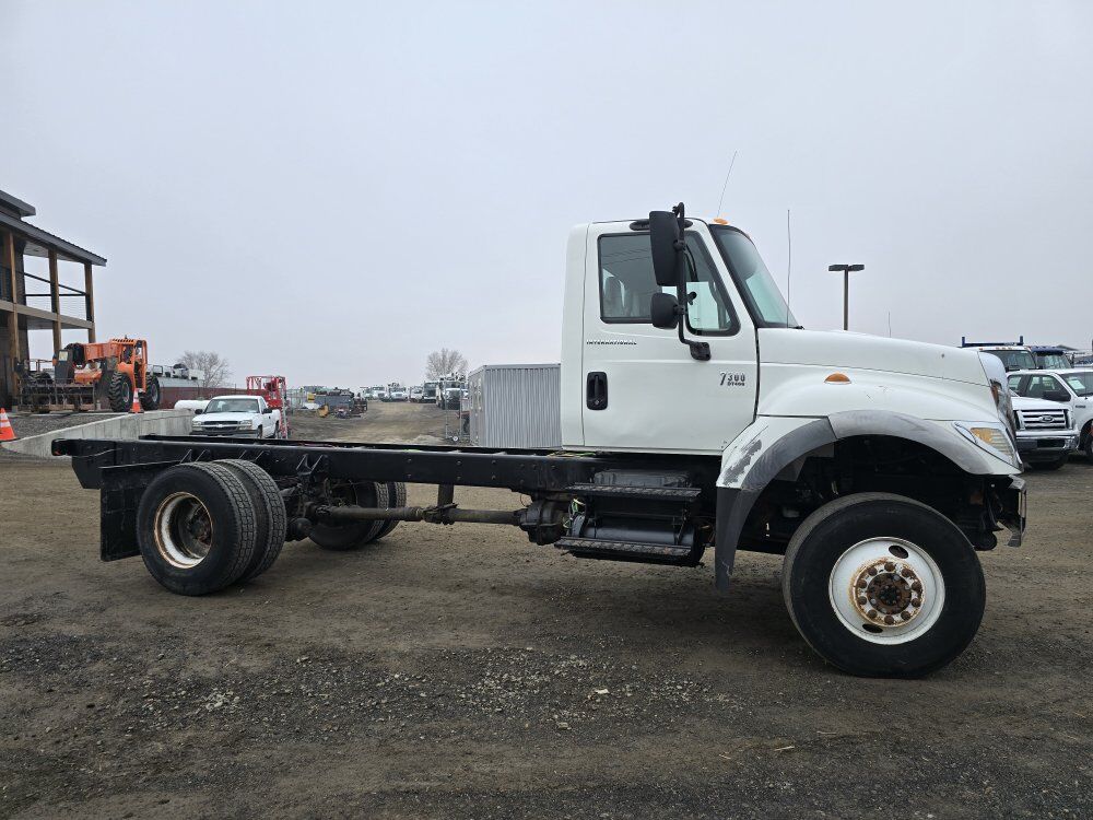 2007 International 7300 4wd cab and chassis, DT466 diesel engine, 6 speed manual transmission, 57,000 miles, 7,700 hours, 33,000GVW, 118 inches cab to axle, 200 inches total frame, air to the rear, PTO, good tires, former fleet vehicle 208-734-3434