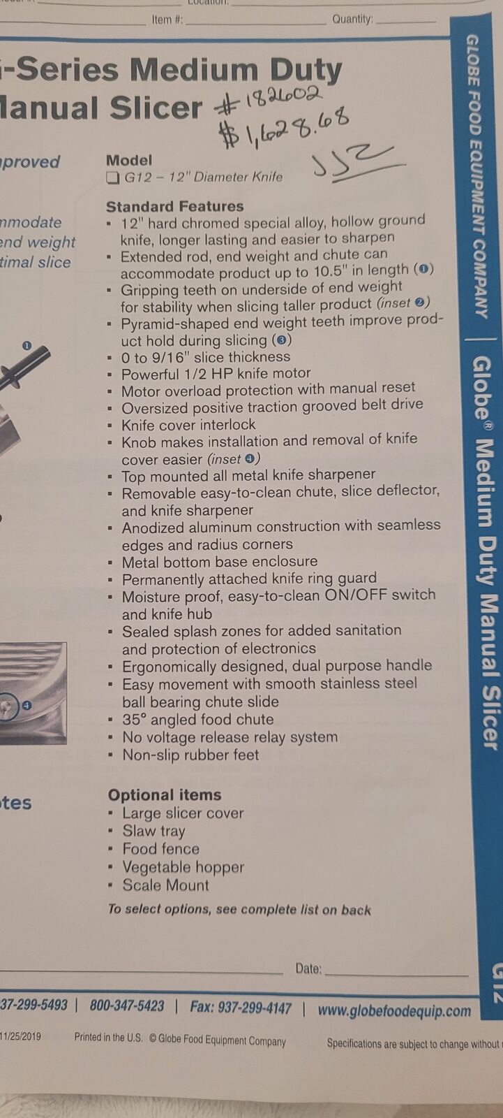 This slicer is in excellent condition. Original price was $ 1,628.00 + taxes and shipping.