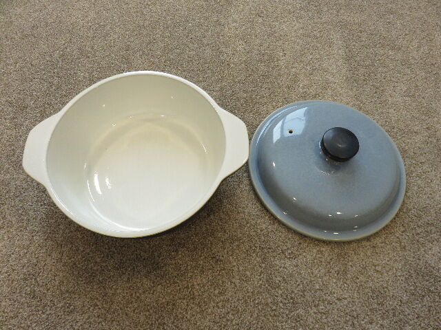 This brand new and never used Made in England Denby 2 Quart Casserole dish was purchased 20+ years ago at Macy's as a gift; but wound up not giving it and just kept it in a storage box in a dining room cabinet since then.