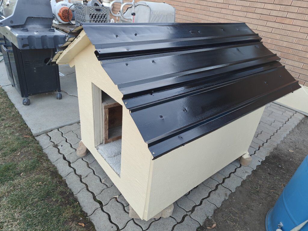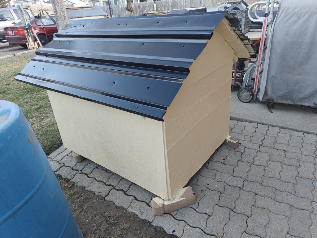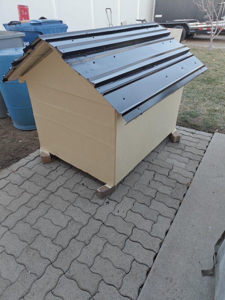GooglePay38" wide x 48" long x 41" tall dog house. Totally insulated. All new paint! Steel roof will last forever. Very heavy duty house built by my Father and myself. Carpet floor. Absolutely no leaks. Will deliver in Utah County for FREE!