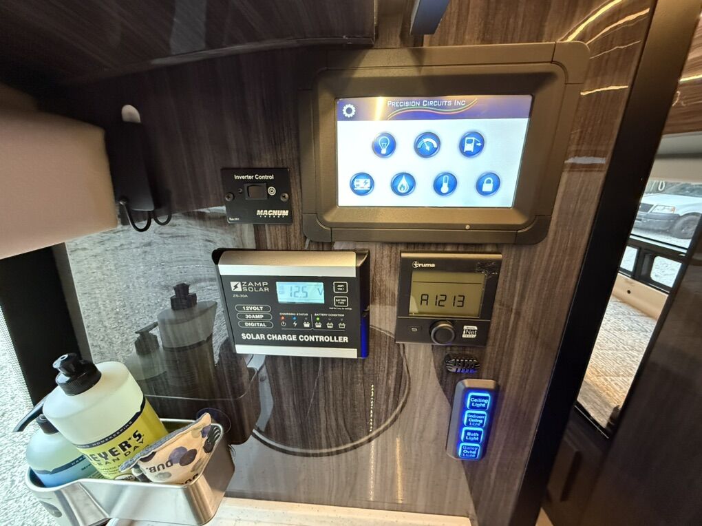 Electronics: 1000 watts inverter, 200W solar panel, 45-amp charger, 30-amp power cord, optional TV/DVD, Precision Plex app for monitoring. • Comfort: Ultraleather cab seats, swivel seats, AC, Truma Combi heating, power entry step