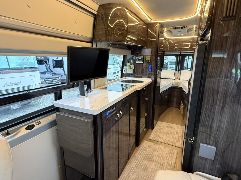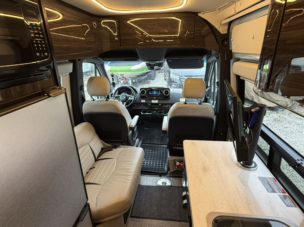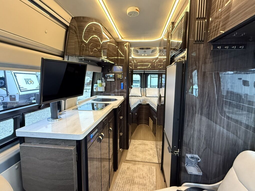 In any Winnebago Era class B diesel touring coach you will find a variety of seating, sleeping, bathing, and cooking options depending on the model you select. Built on the Mercedes-Benz Sprinter chassis you can be assured a powerful and fuel efficient vehicle for a variety of traveling needs. The contemporary styled interior with Ultraleather furnishings not only looks good, but feels good too! Each model includes an MBUX Touchscreen infotainment center and added safety features, such as active brake assist, crosswind assist, blind spot monitoring, plus a collision avoidance system! You will enjoy stainless steel appliances along with a compressor driven refrigerator for the best cooling performance possible. And, for those of you that like to go off-grid for awhile, the expandable solar power system and 2,500 watt Onan MicroQuiet LP generator allow you to camp just about anywhere in complete comfort and style!
