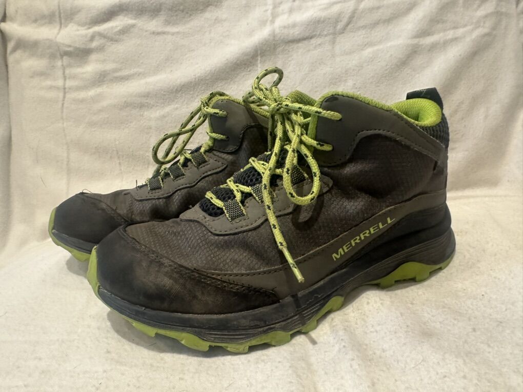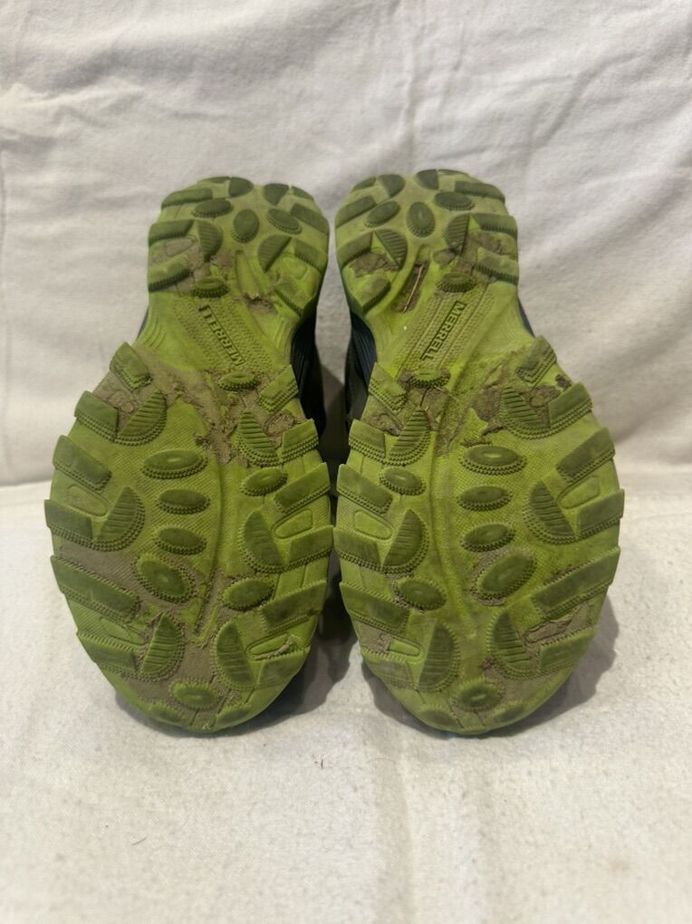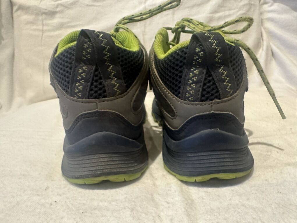 Merrell youth size 3 gray/navy with lime green trim, textile and mesh waterproof mid hiking boots. These are in good condition, see photos for details. I take cash or Venmo, but cash is preferred. Text is best. 8012014446. Check out my other ads for additional sizes and styles.